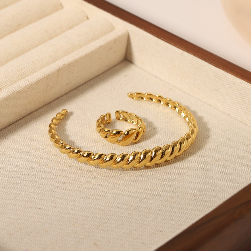 Twisted Pattern Bracelet Ring Set