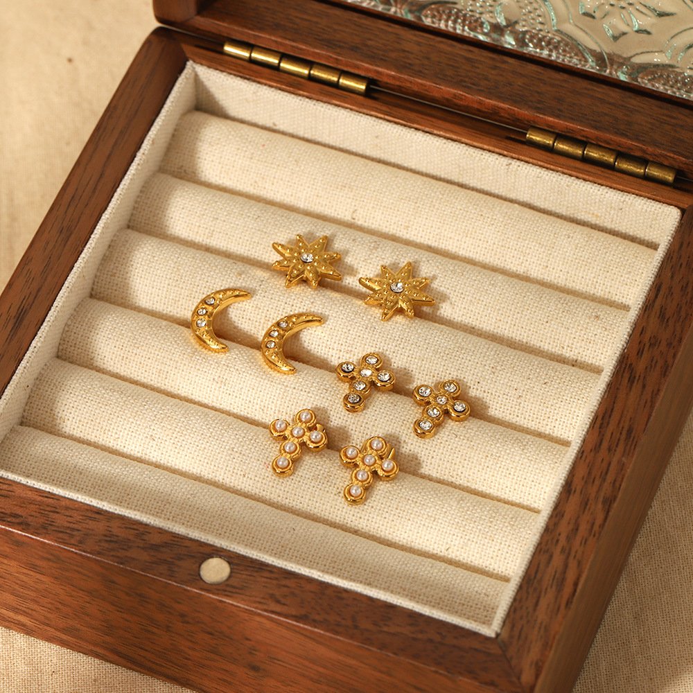 Zircon Heart Eight-Pointed Star Earrings