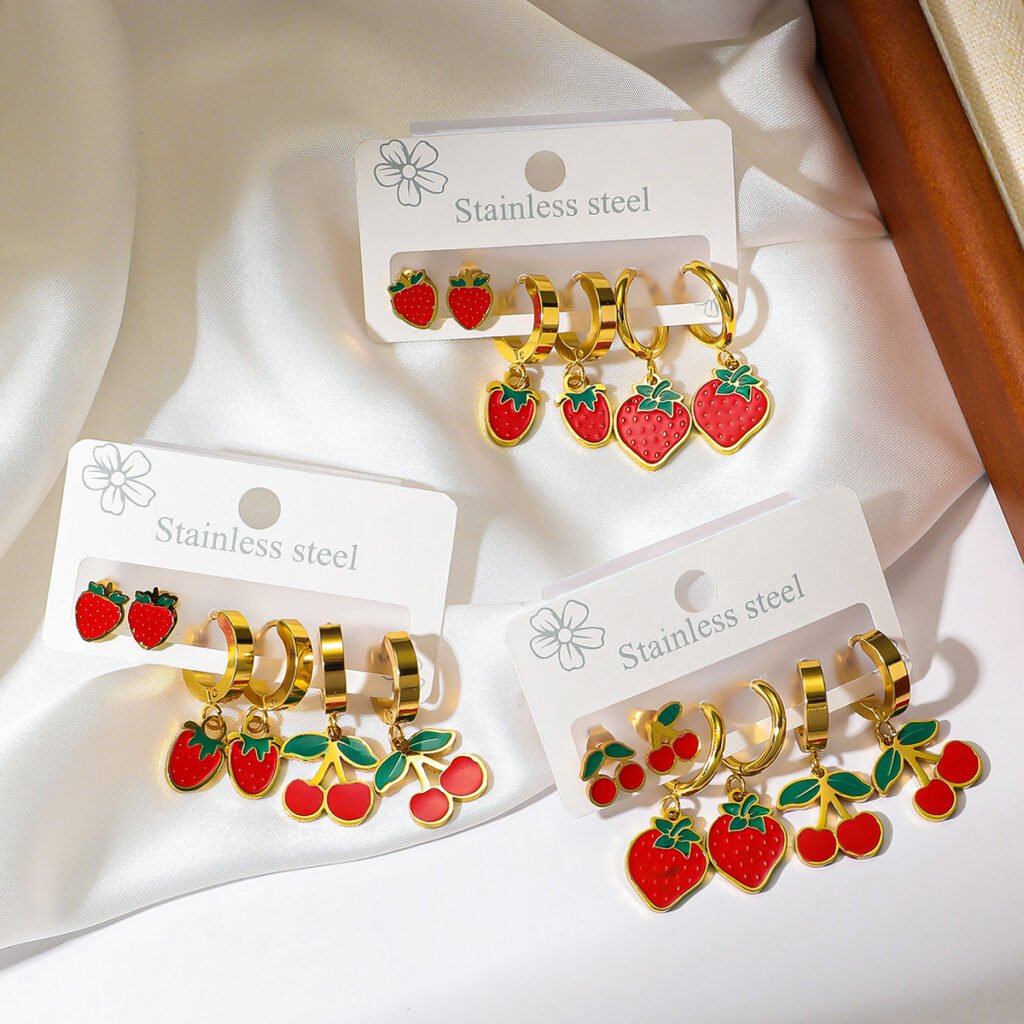 Colorful Strawberry And Cherry Stud Earrings