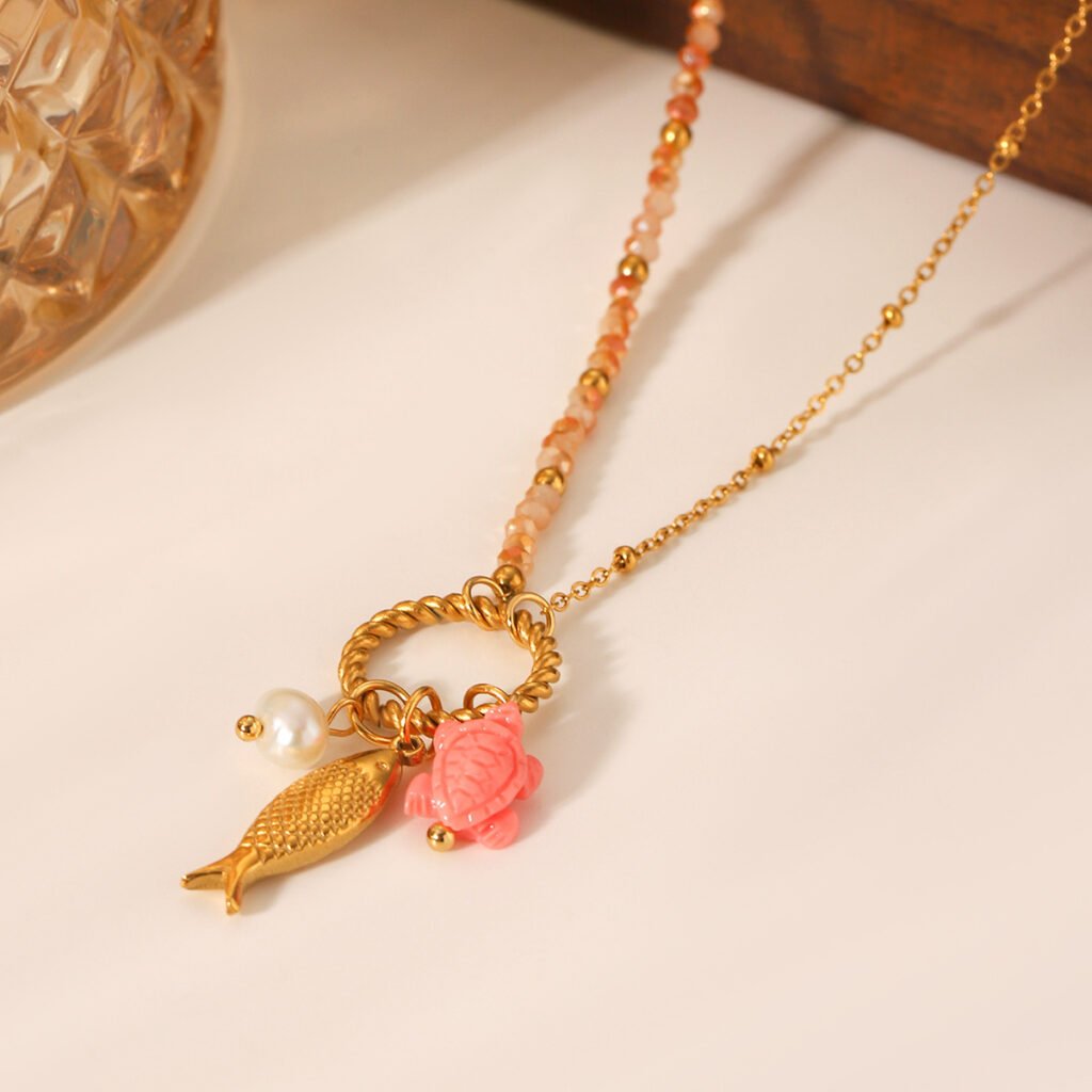 Ocean Turtle Pearl Goldfish Necklace
