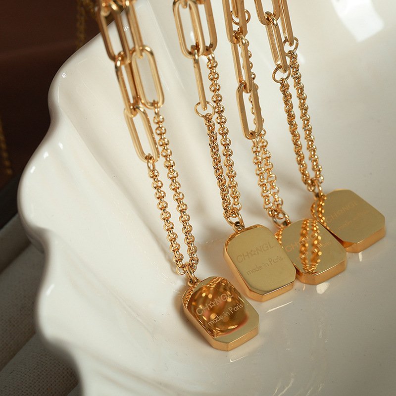 Square Plaque Letter Pendant Clothes Chain Necklace