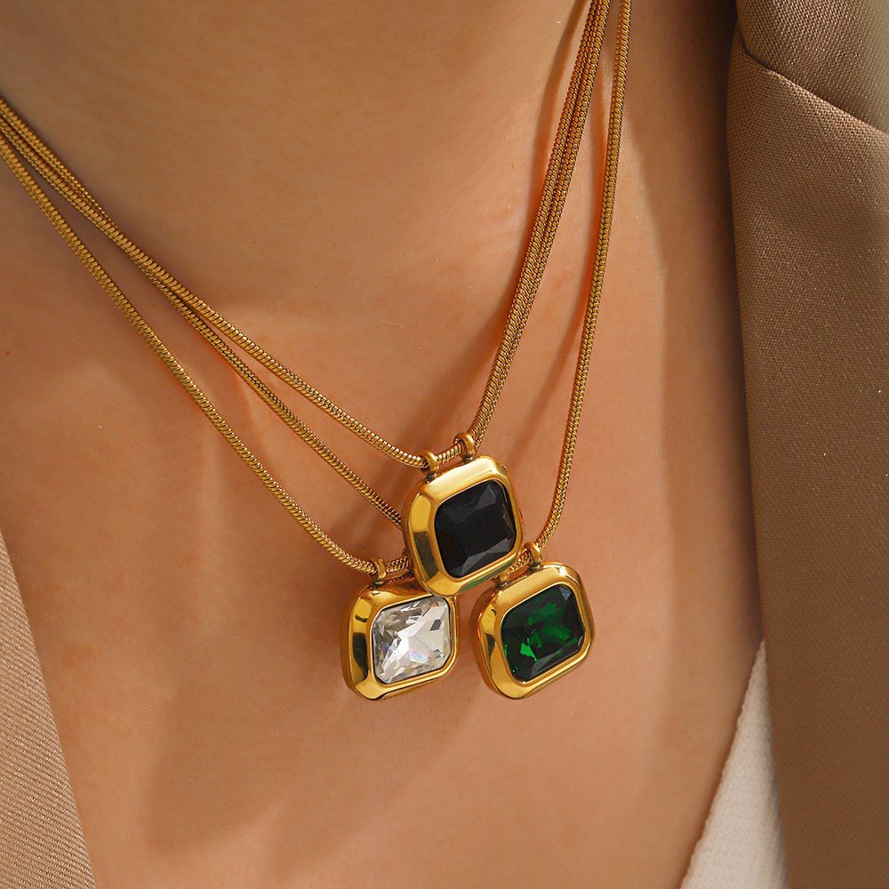Square Colored Zirconium Green Zirconium Necklace