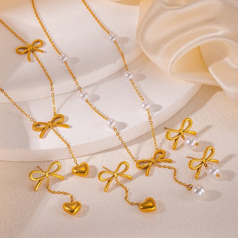 Bow Pearl Heart Necklace