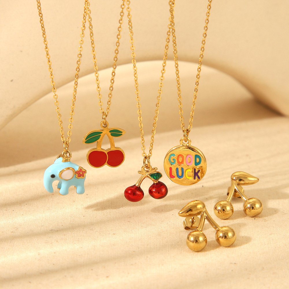 Elephant Cherry Goodluck Fruit Pendant Necklace