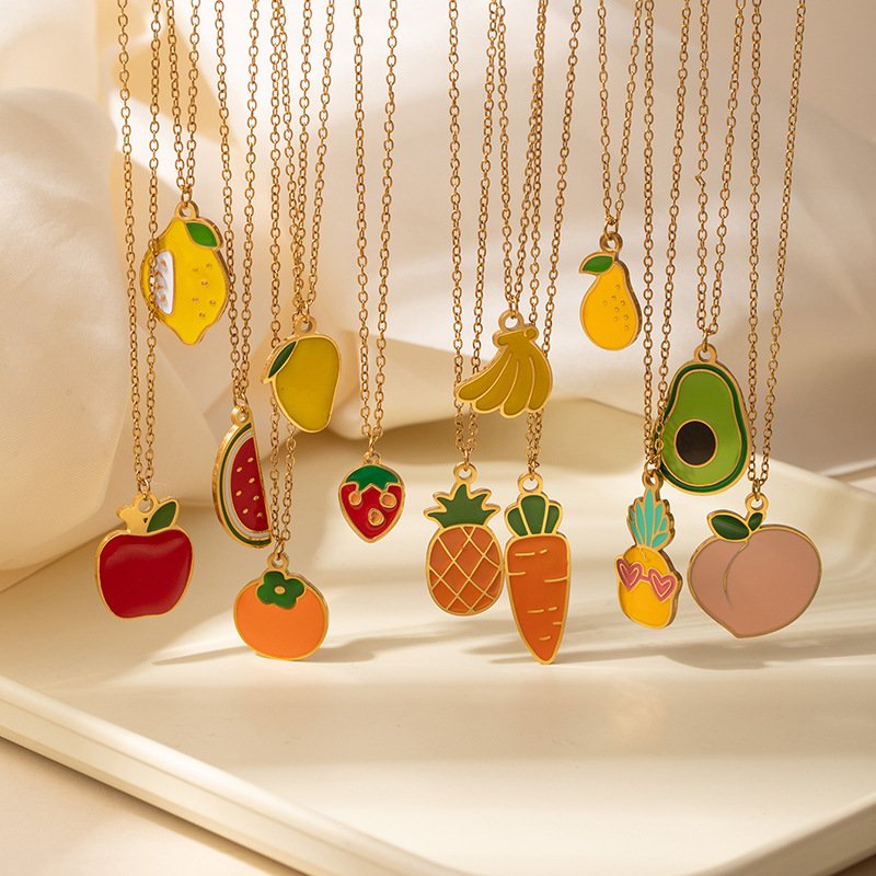 Fruit Strawberry Cherry Apple Watermelon Necklace