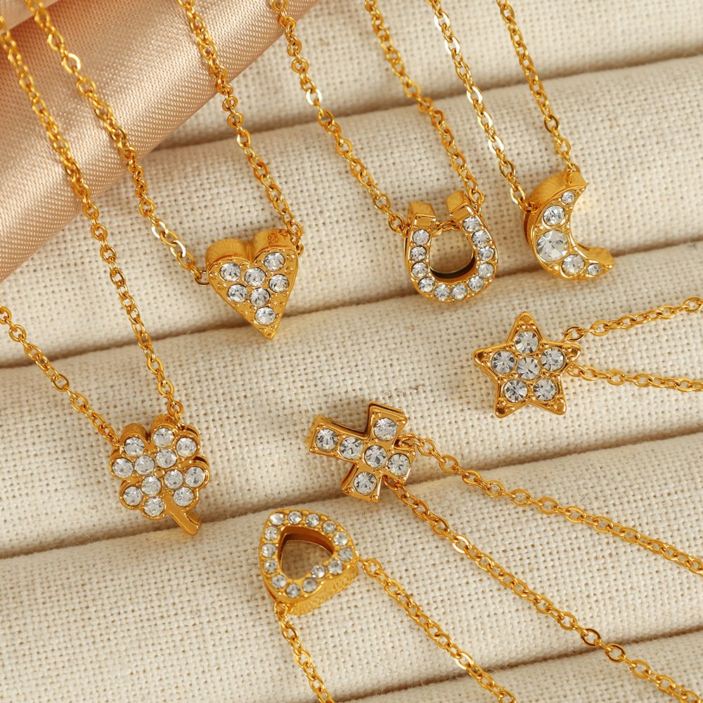 Four-Leaf Clover Cross Flower Heart Necklace