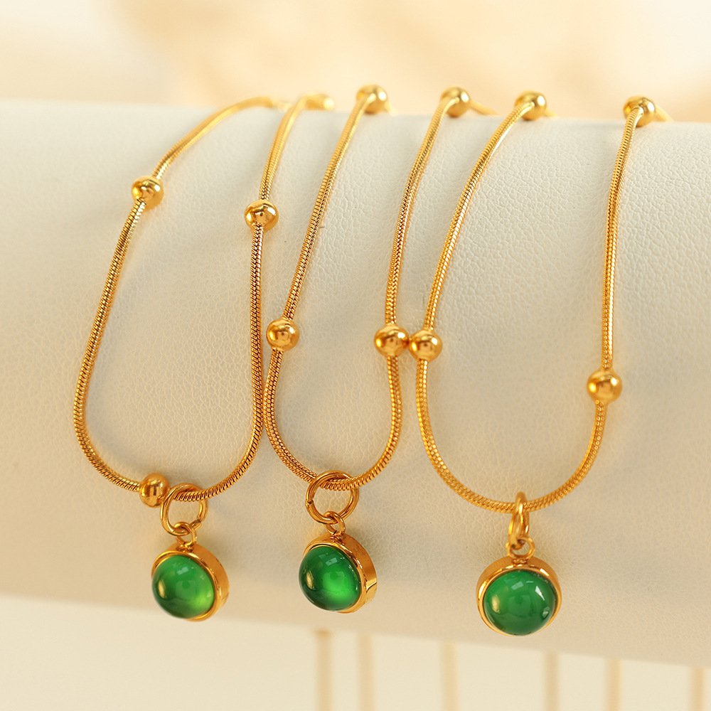 Green Glass Stone Pendant Necklace