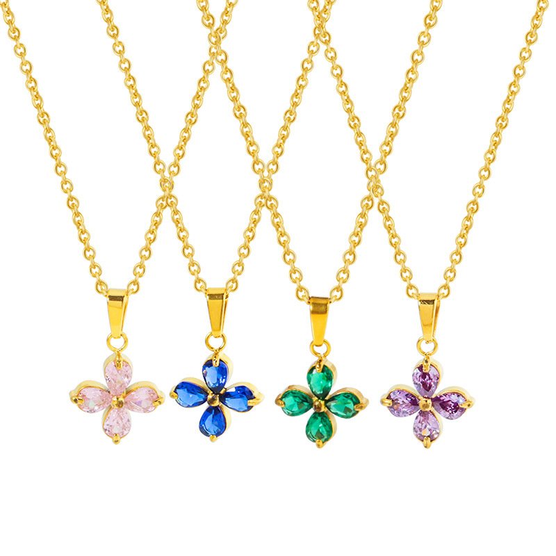 Four-Leaf Clover Flower Petal Zircon Necklace