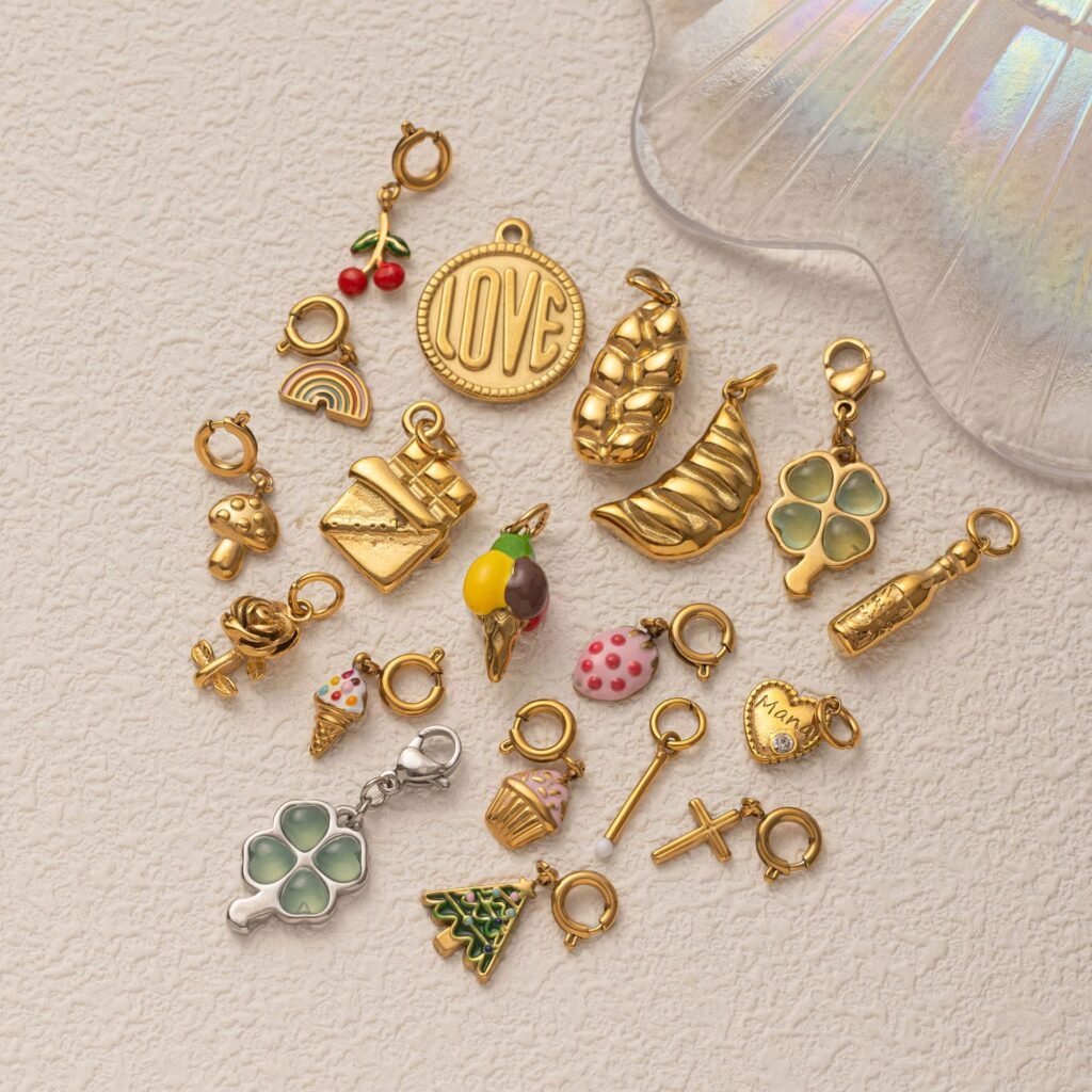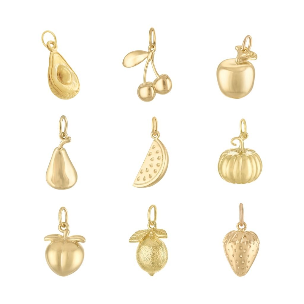 Gold Shoes Flower Avocado Strawberry Cherry Heart Pendant