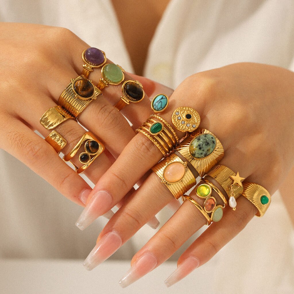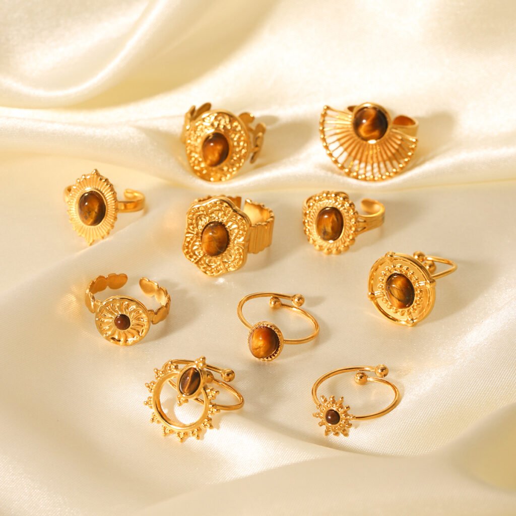 Natural Stone Blue Turquoise Tiger’S Eye Ring