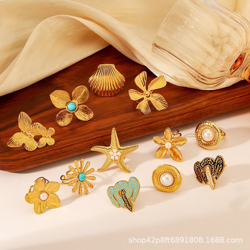 Stainless Steel Ocean Flower Ring