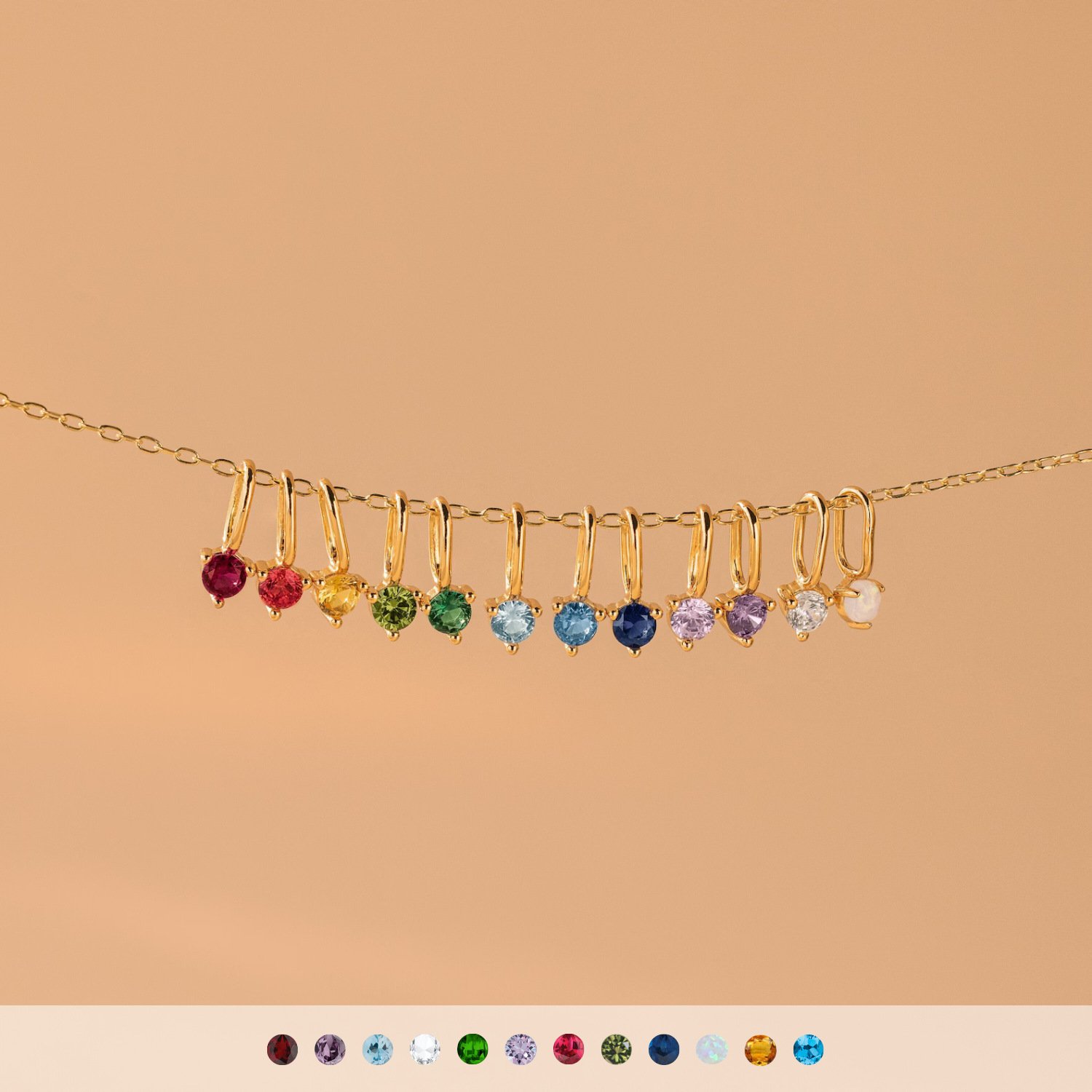 12 Birthstone Round Colored Zircon Pendant Necklace