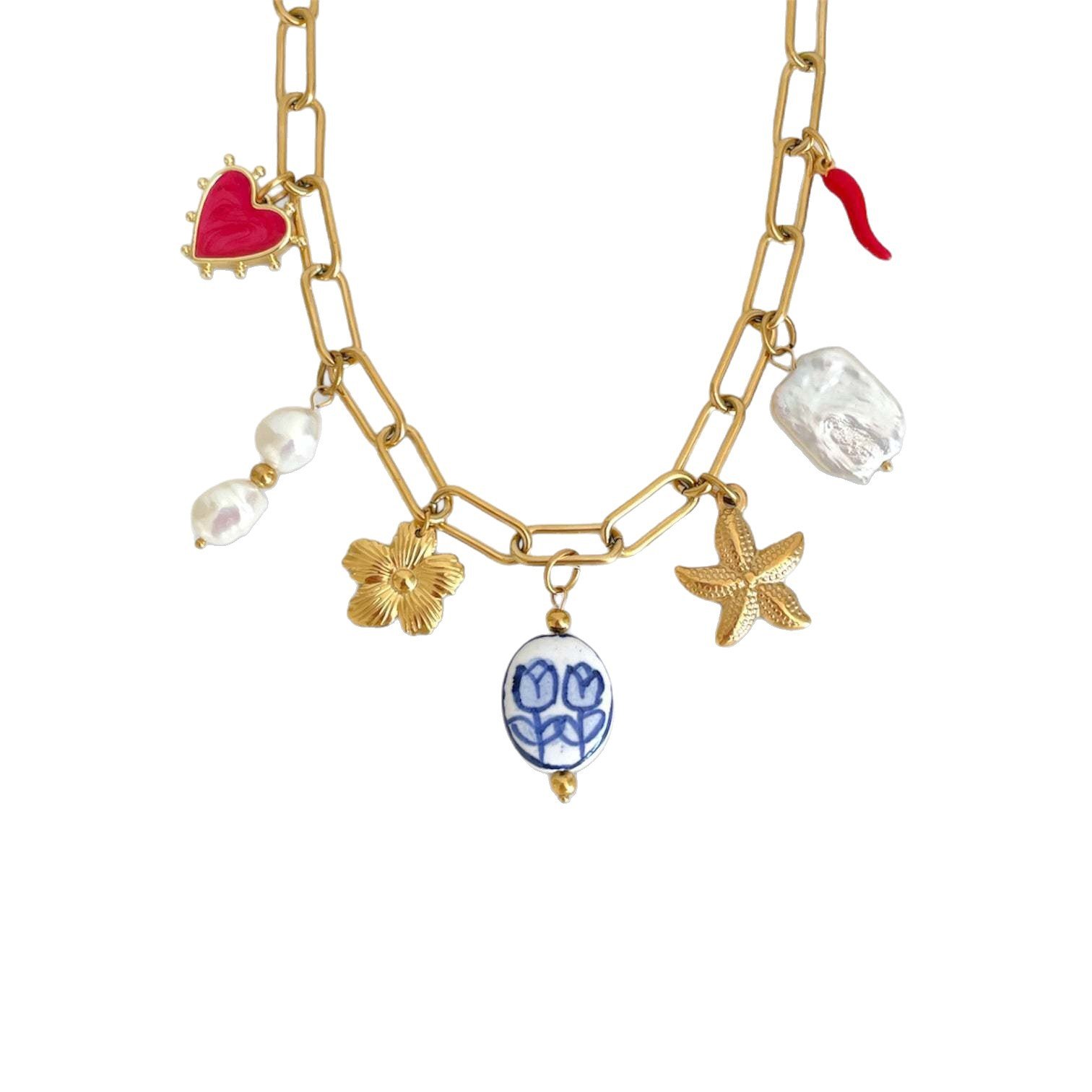 Baroque Pearl Heart Conch Flower Pepper Tassel Necklace