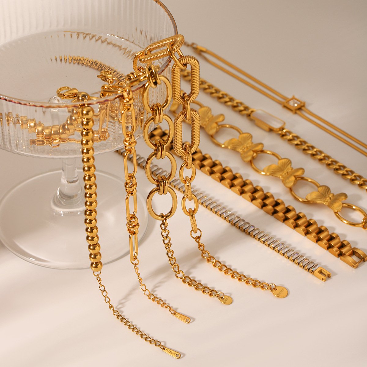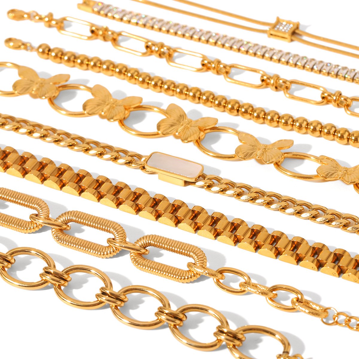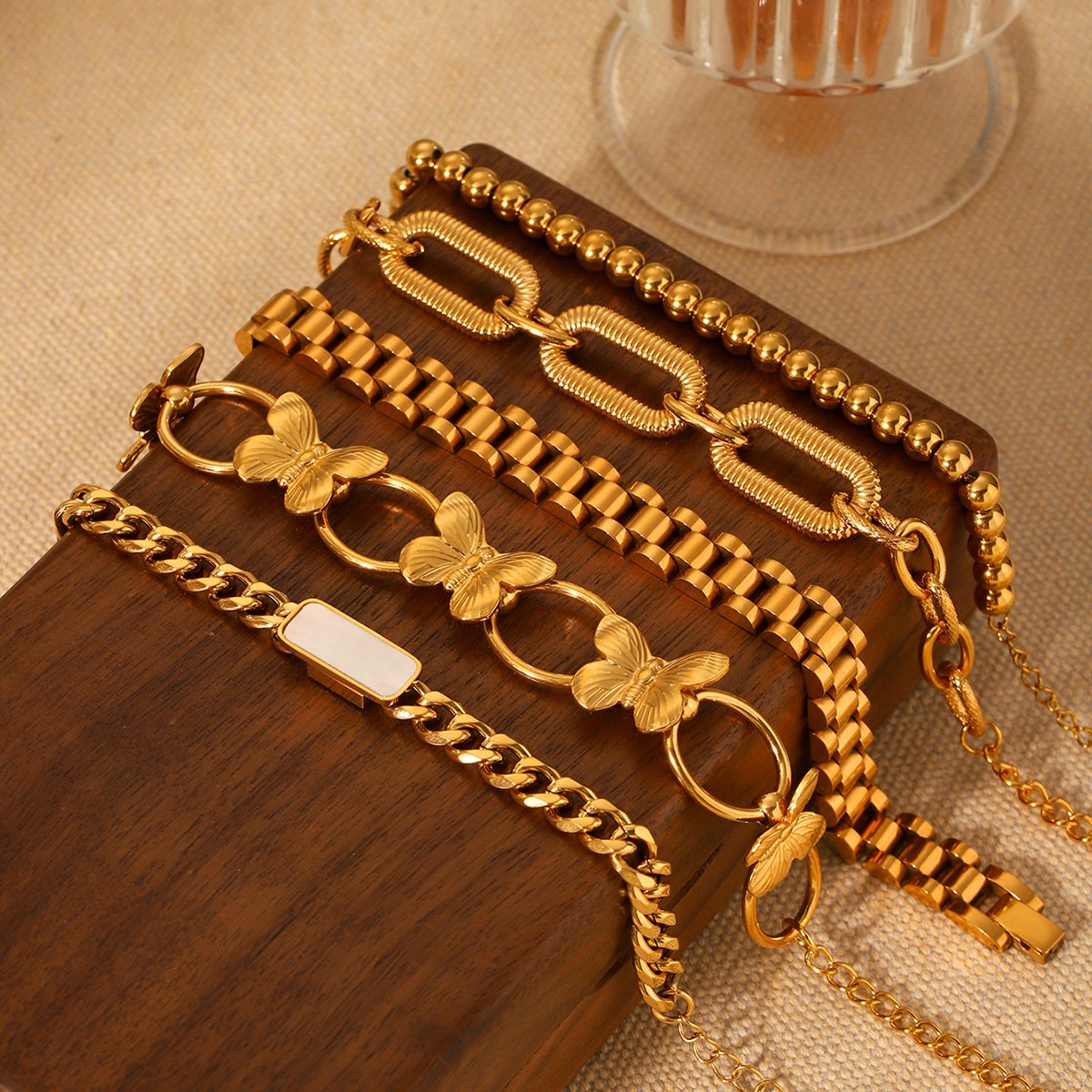 Butterfly Zircon Watch Round Bead Cuban Chain