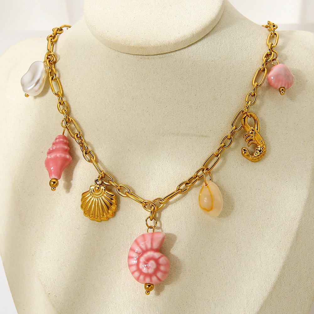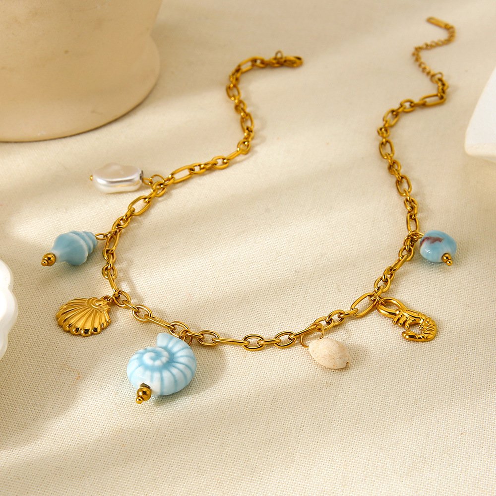 Ceramic Conch Shell Imitation Pearl Necklace