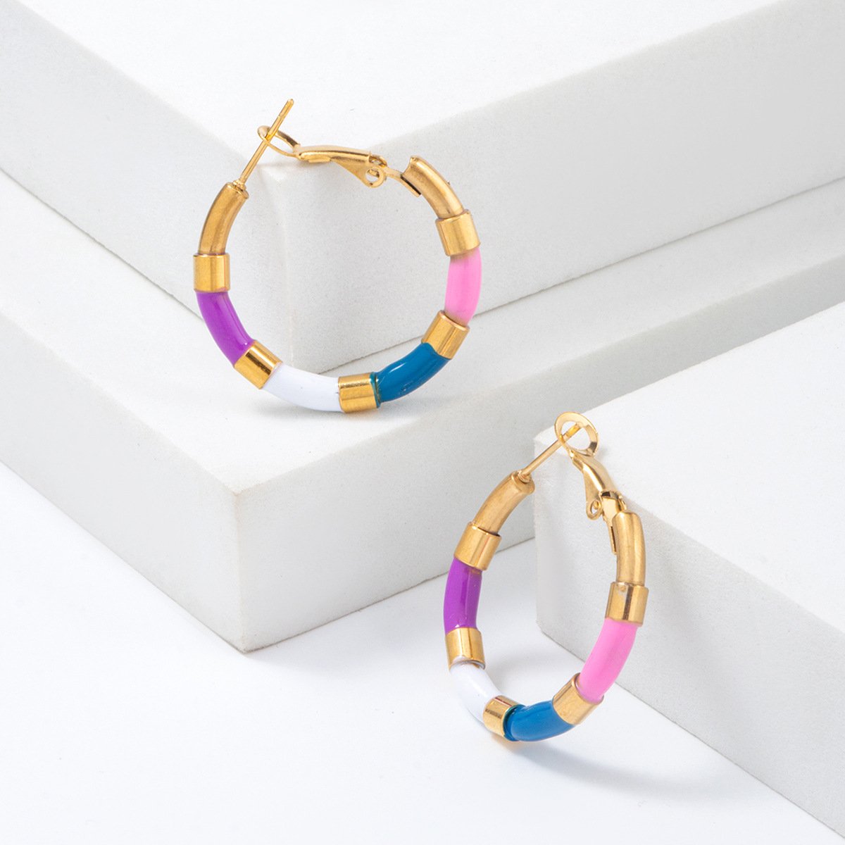 Colored Oil Drop Round Earrings