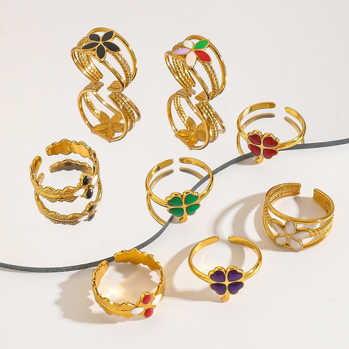 Colorful Oil-Drip Flower Ring