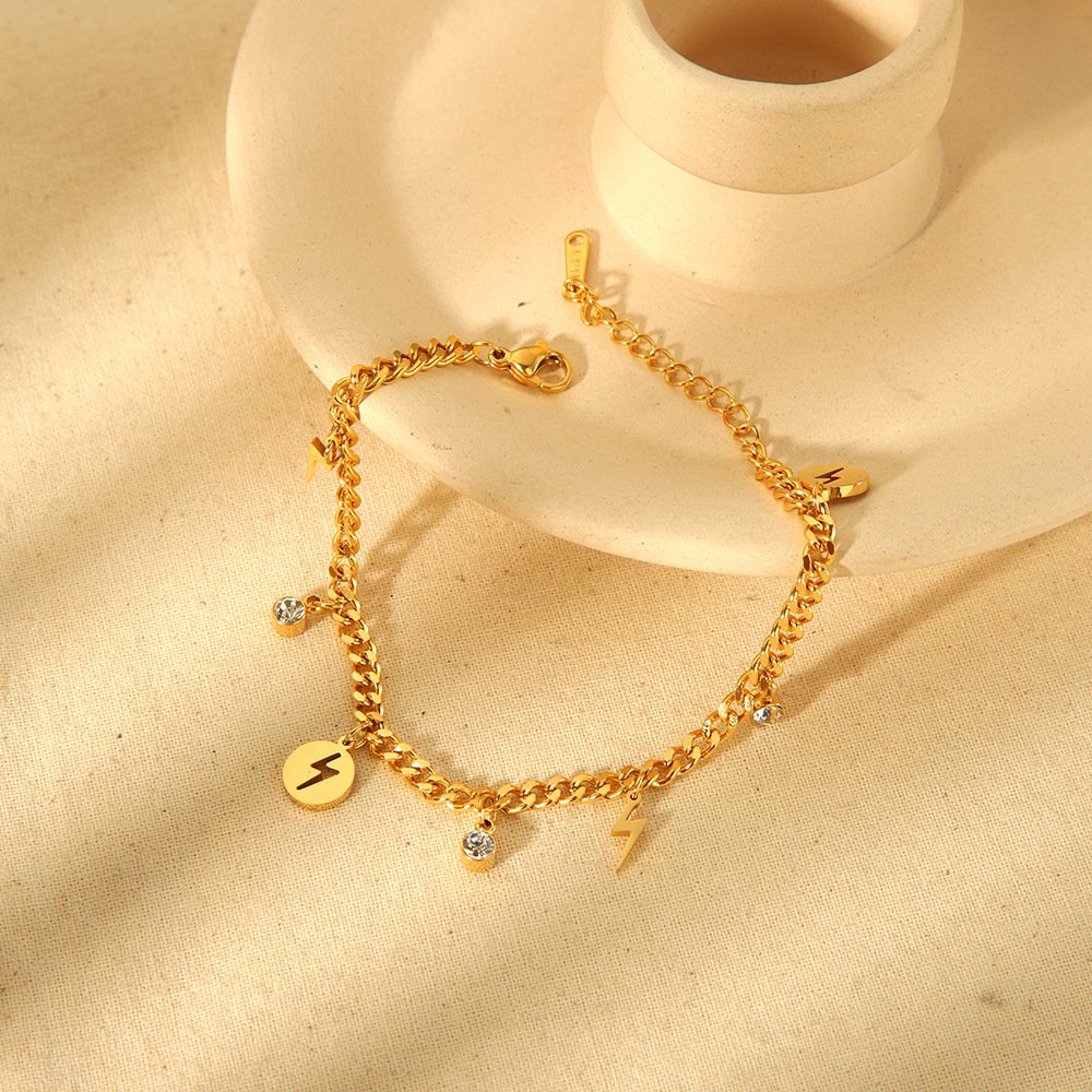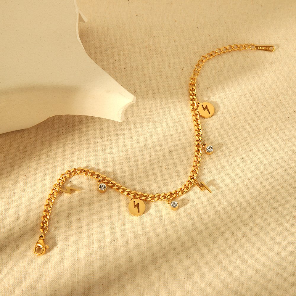 Disc Lightning Rhinestone Pendant Bracelet