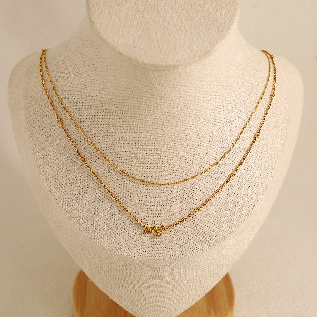 Double-Layered Olive Leaf Pendant Necklace