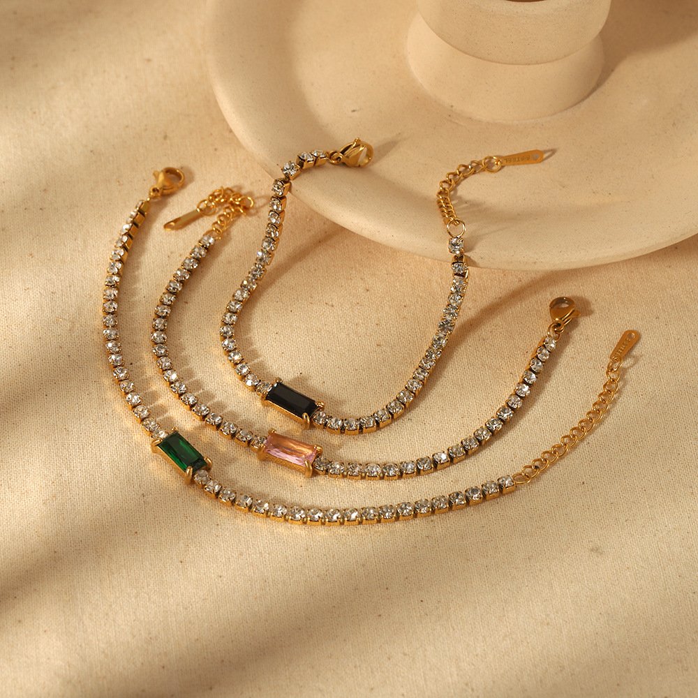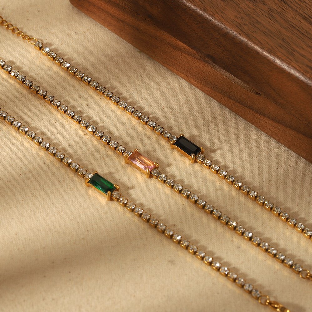 Emerald Black Green Pink Zircon Bracelet