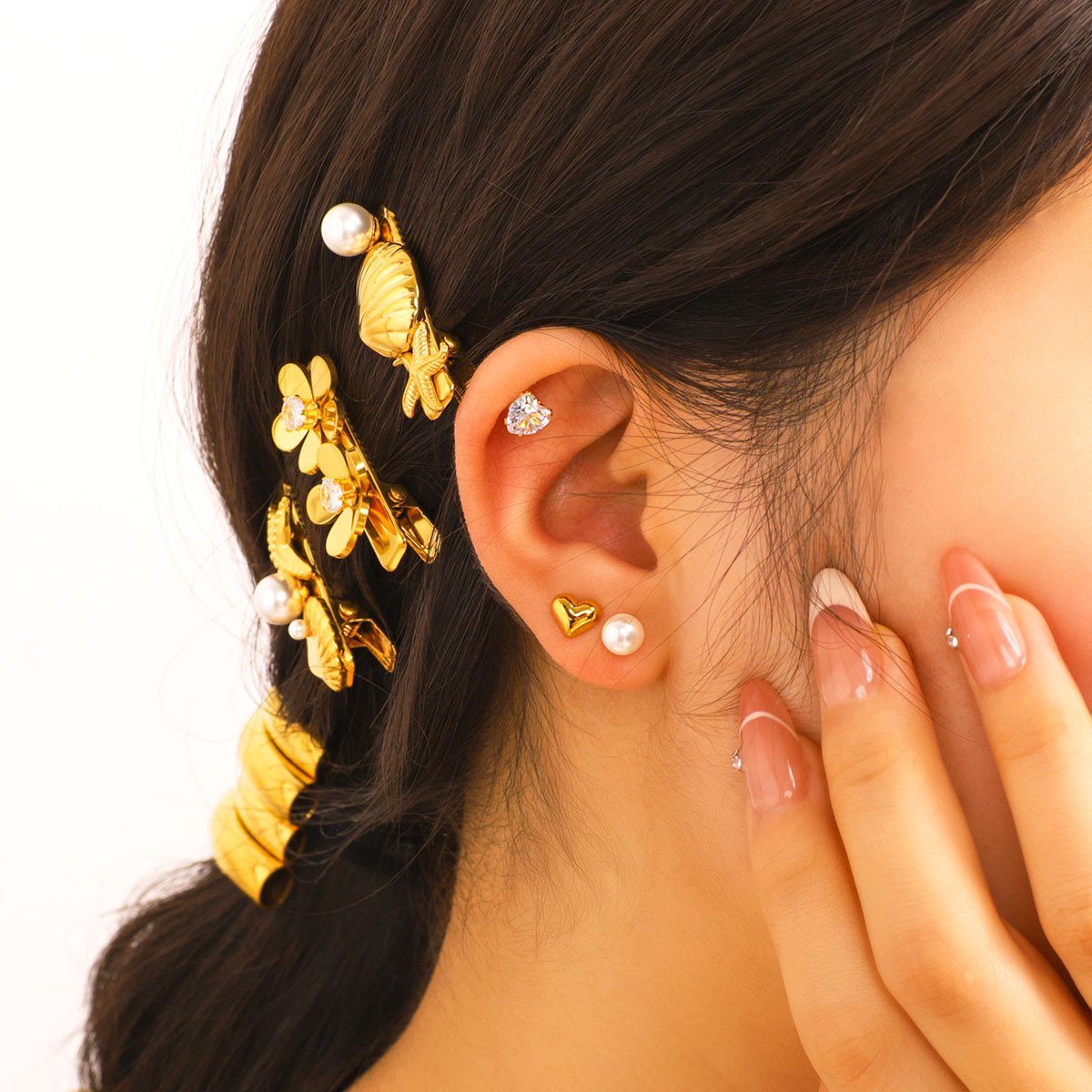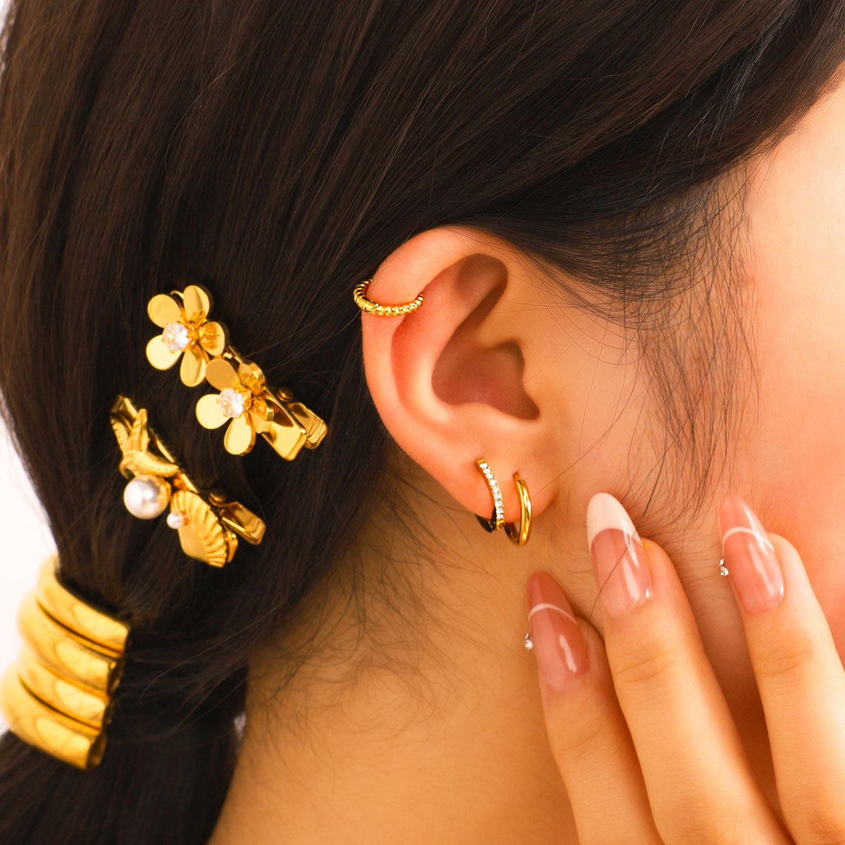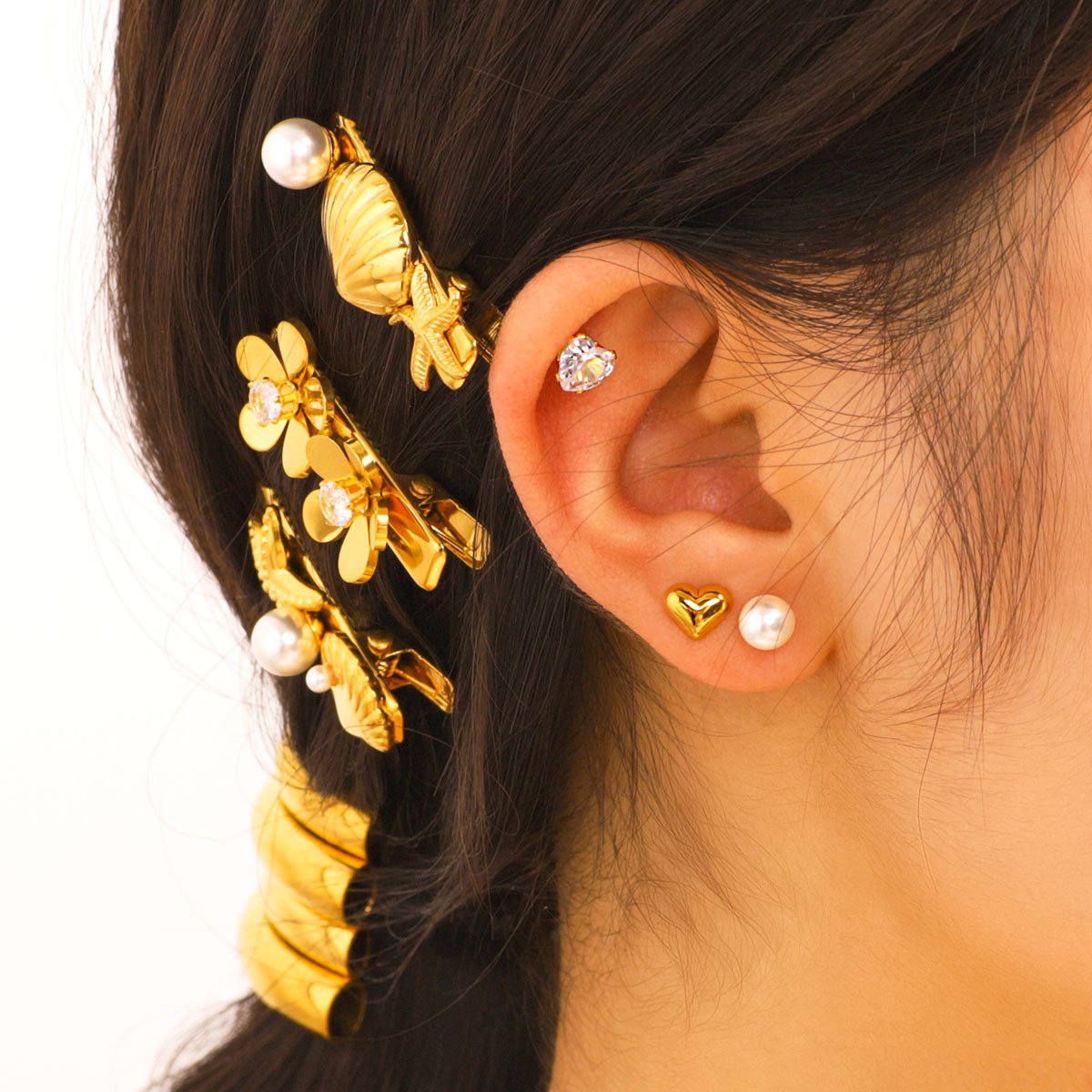 Flower Bow Crescent Earrings