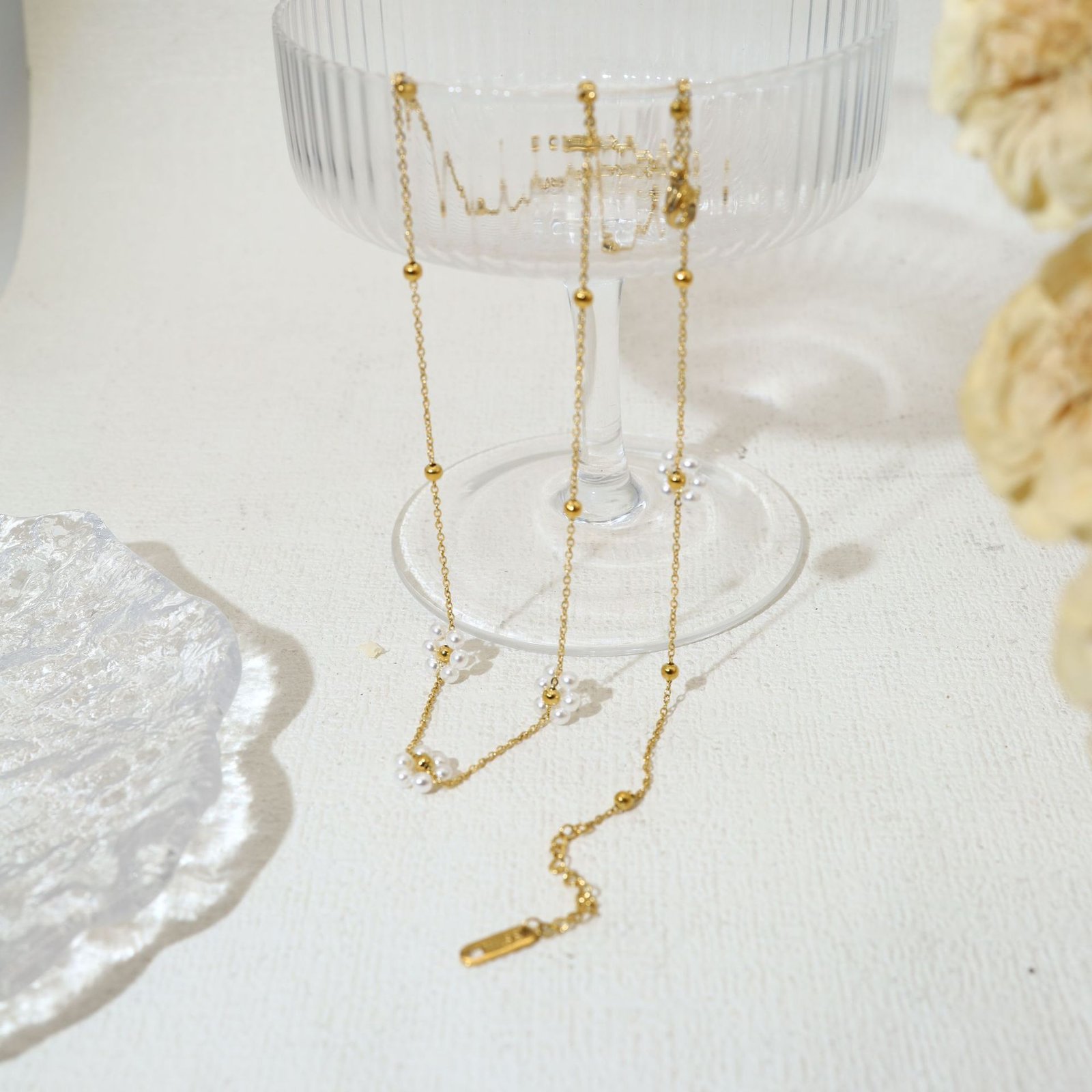 Flower Pearl Necklace Bracelet Set