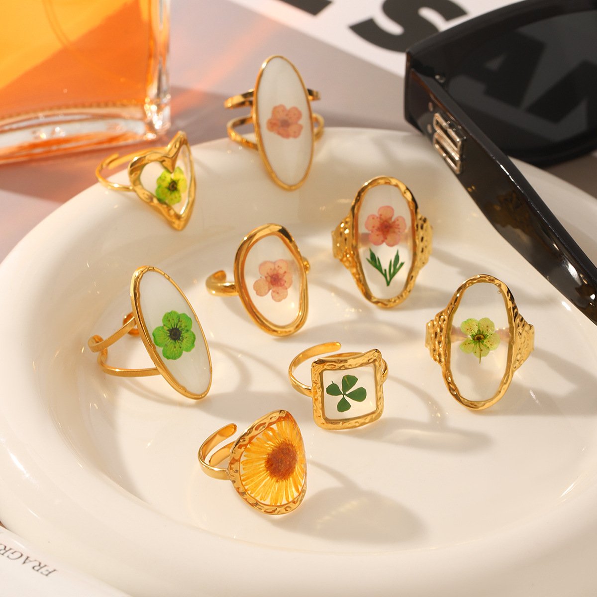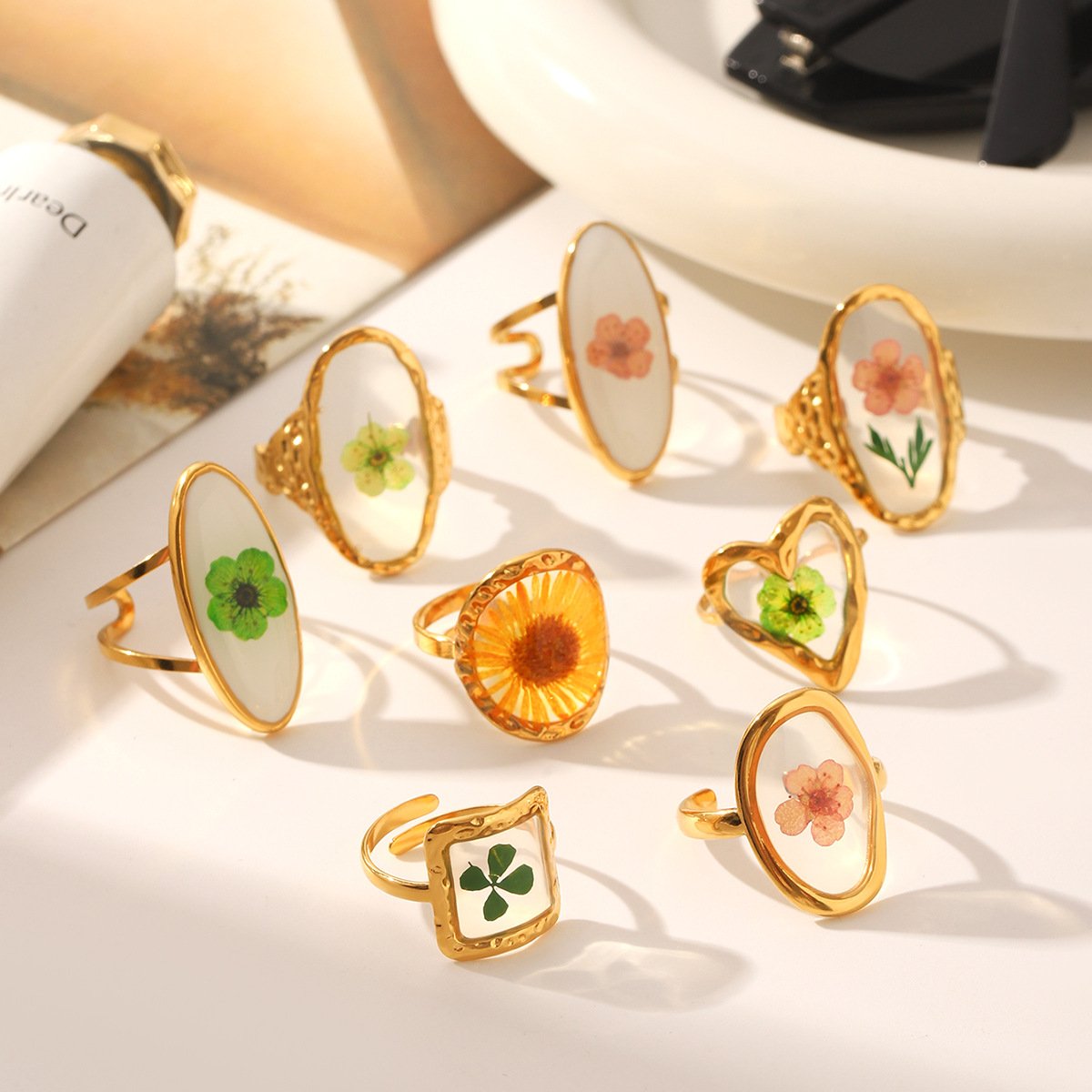 Four-Leaf Clover Preserved Flower Ring