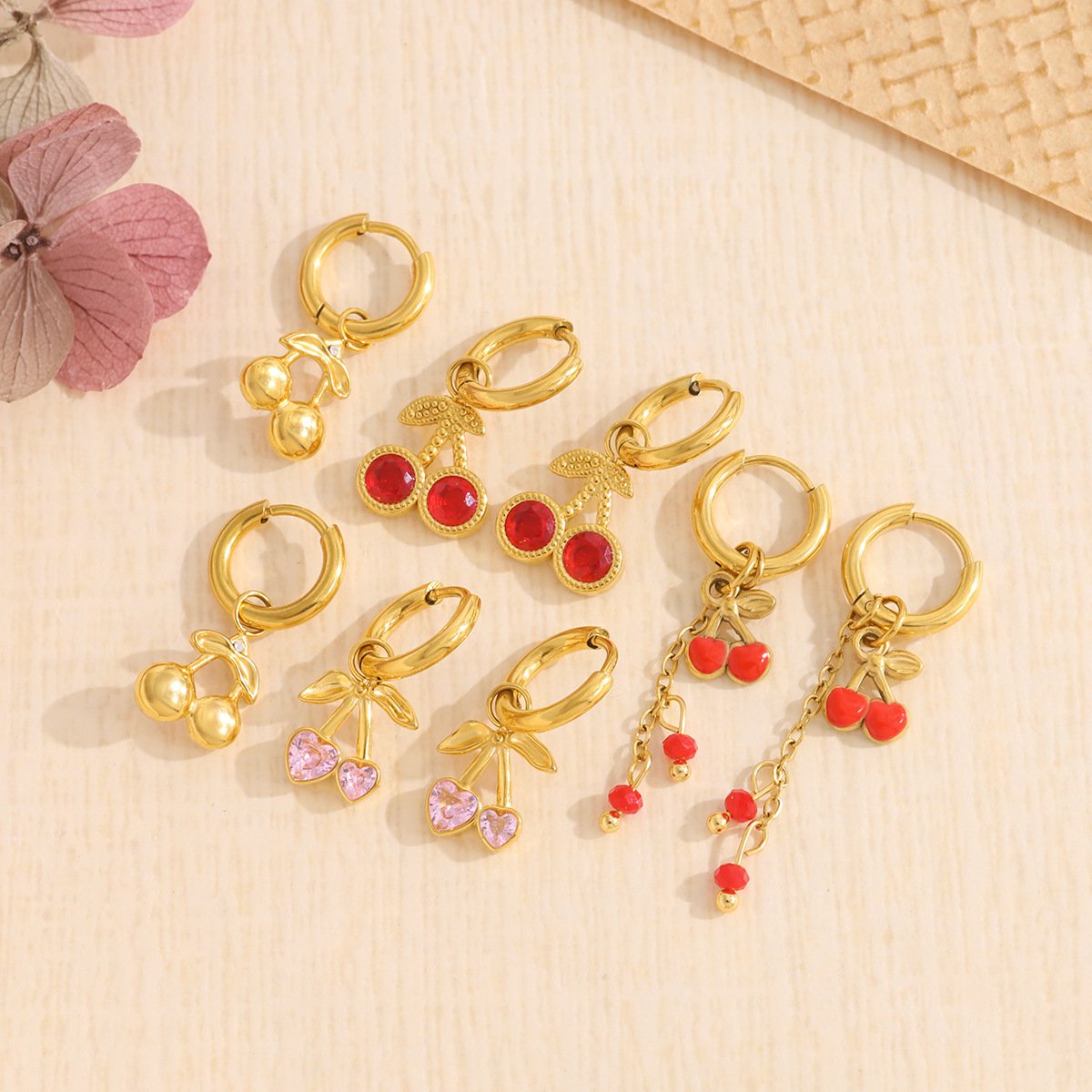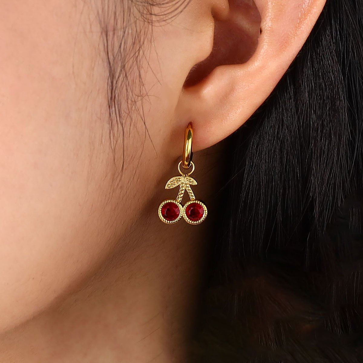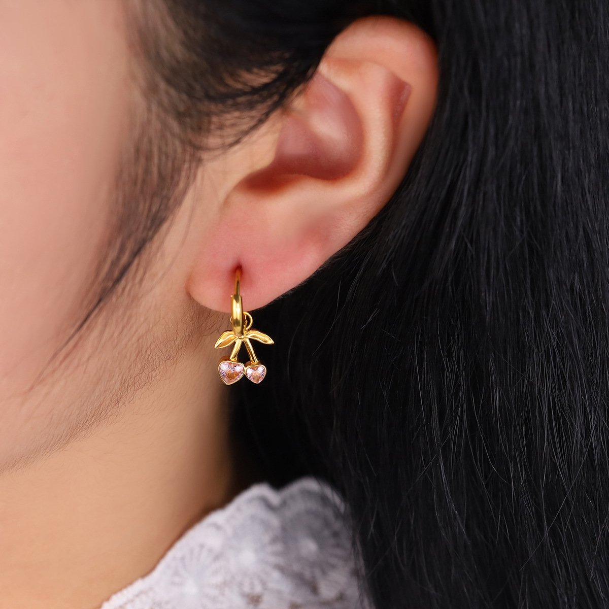 Fruit Heart Cherry Zircon Earrings