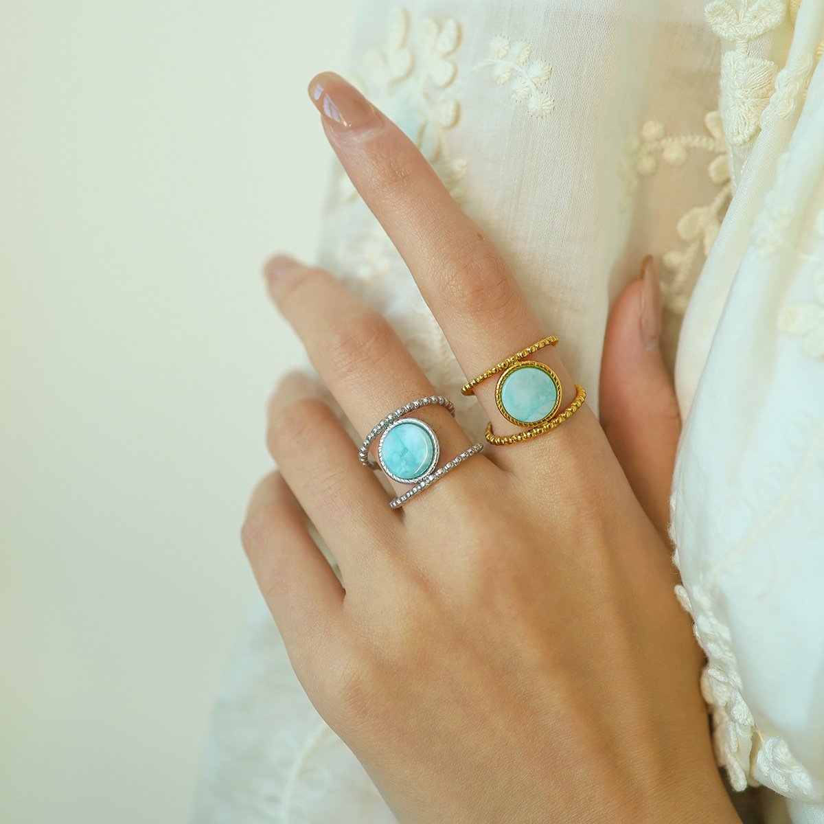 Geometric Natural Stone Ring