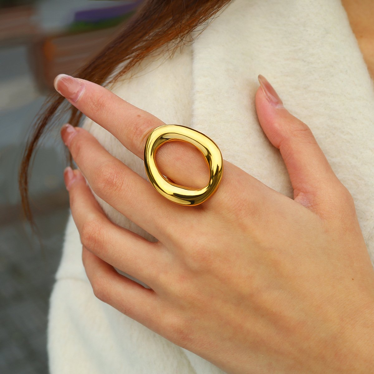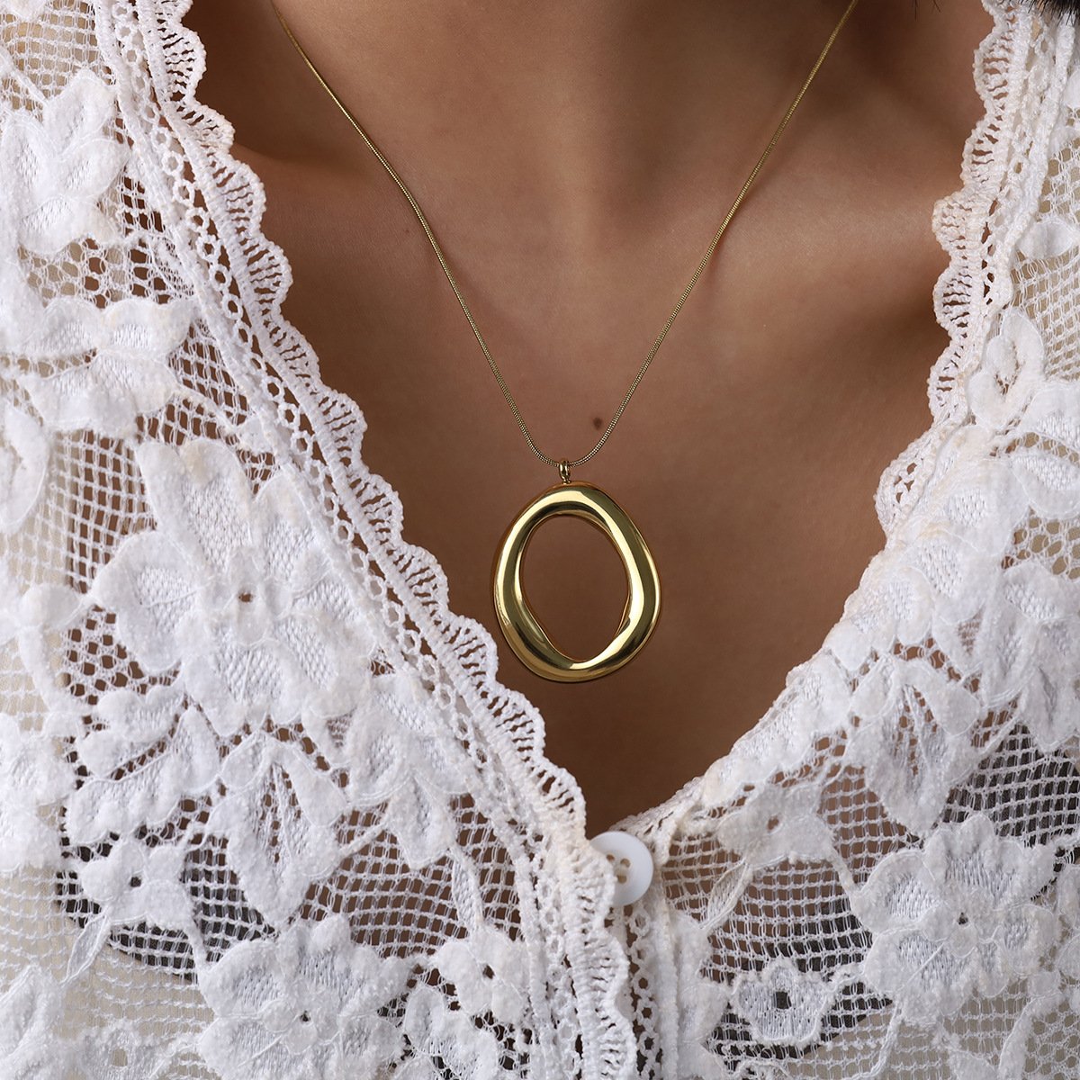 Geometric O-Shaped Hoop Pendant Necklace
