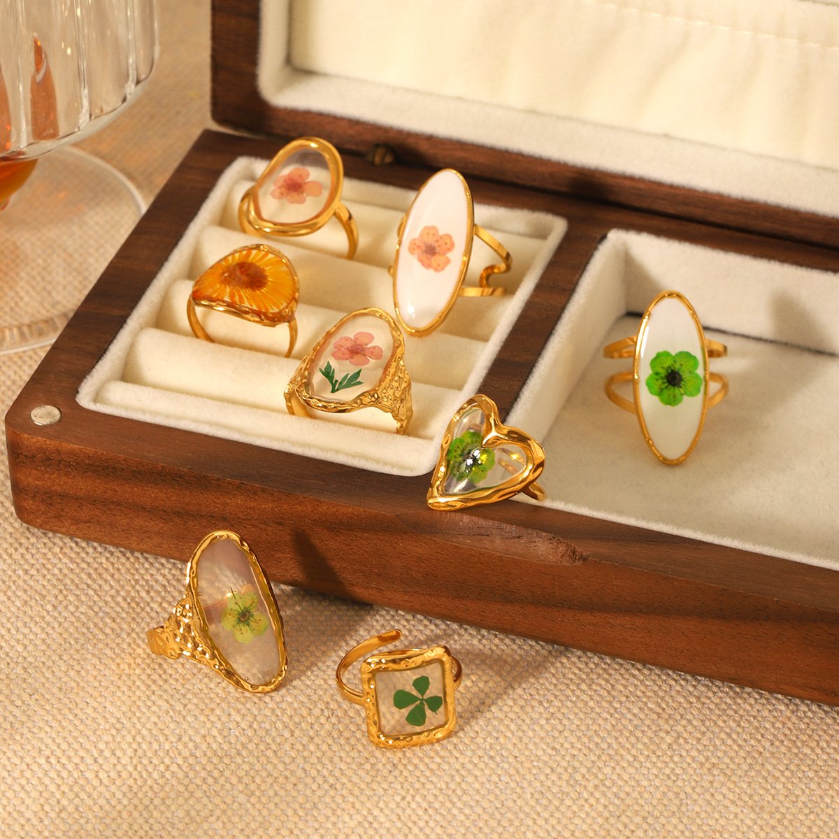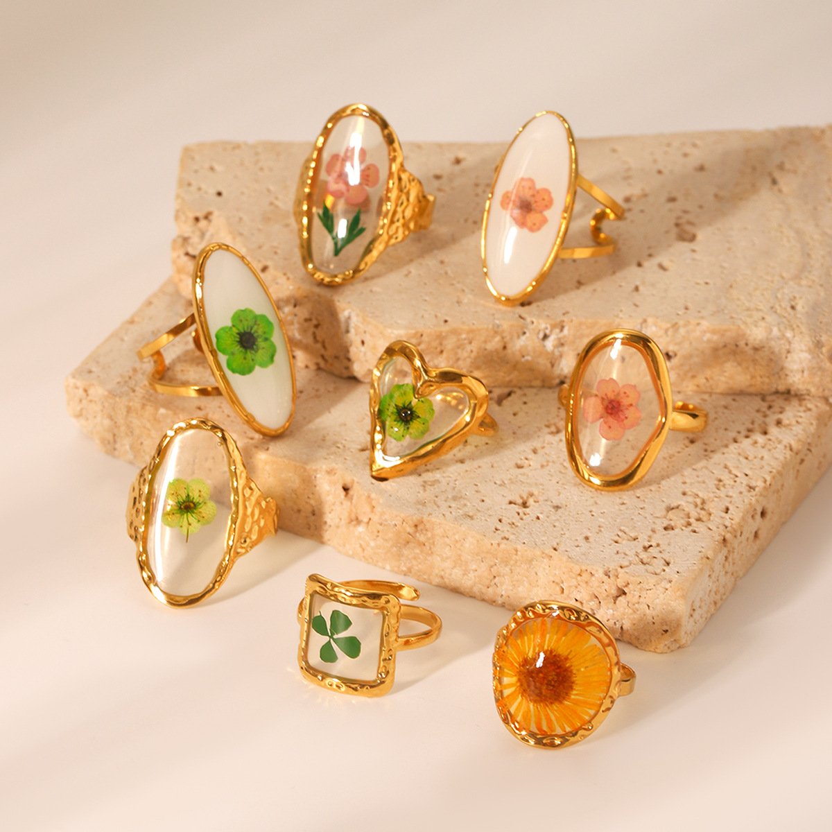 Green Daisy Preserved Flower Ring