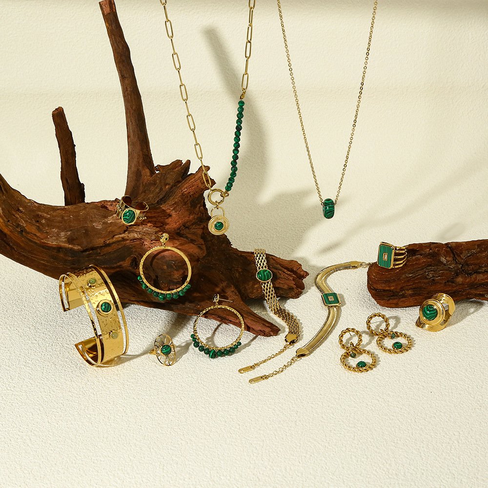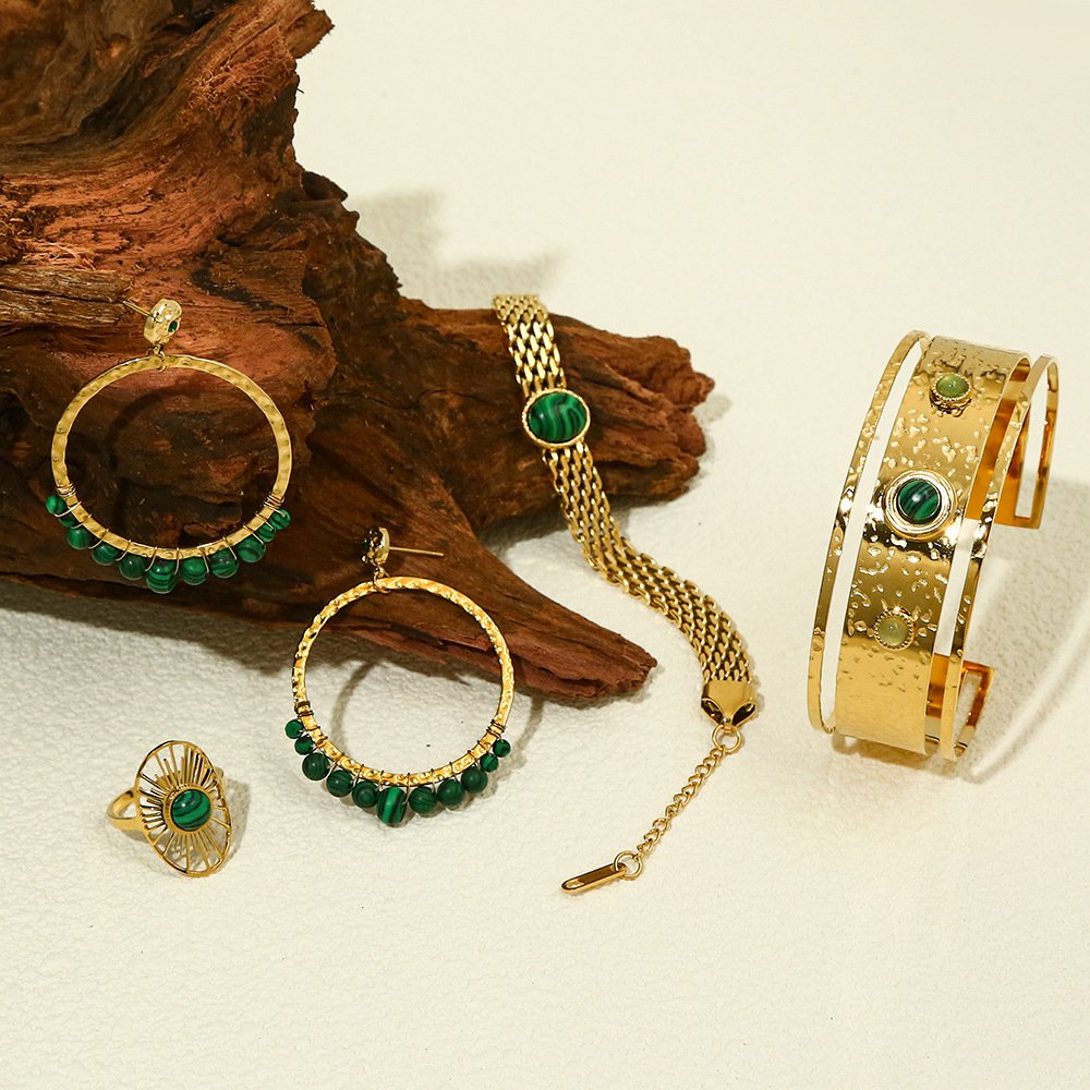 Green Natural Stone Necklace Bracelet Earring Set