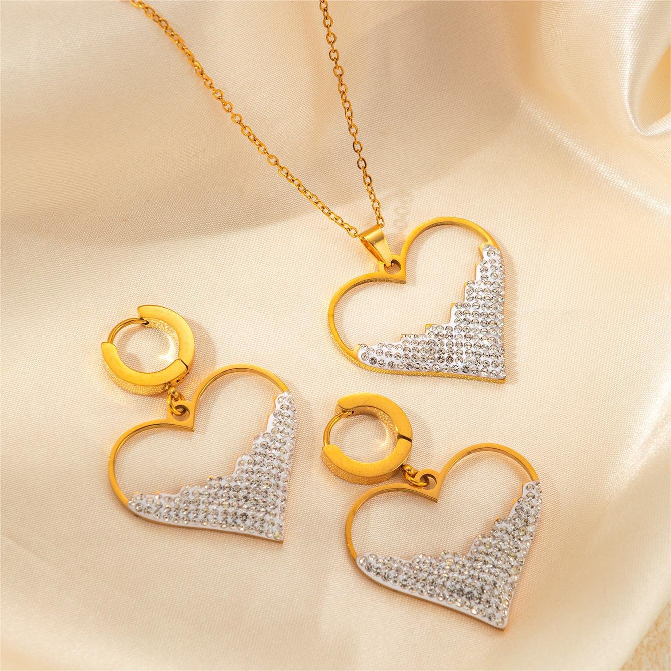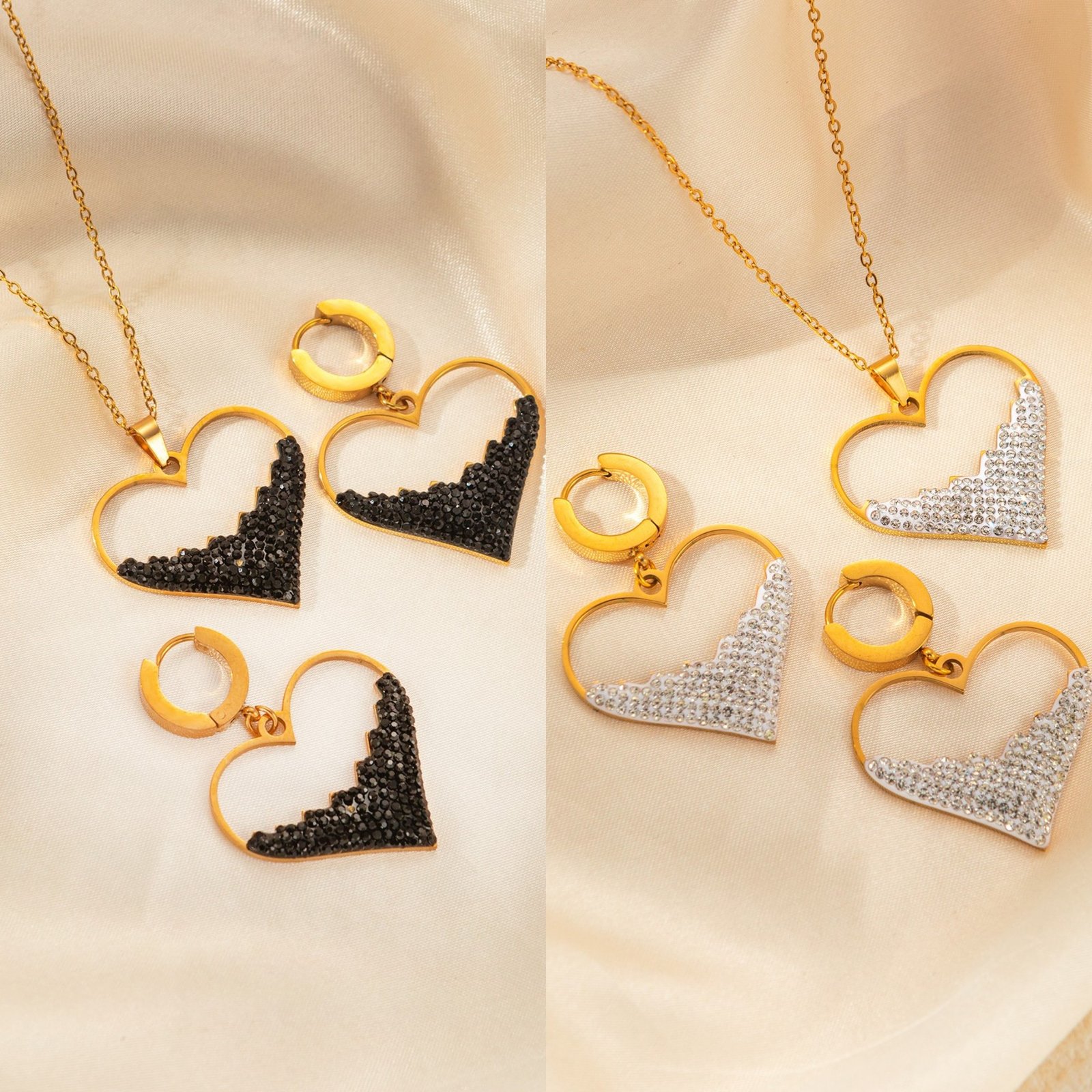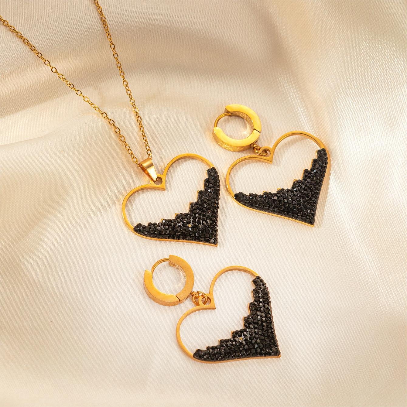Heart Black Zircon Necklace And Earring Set