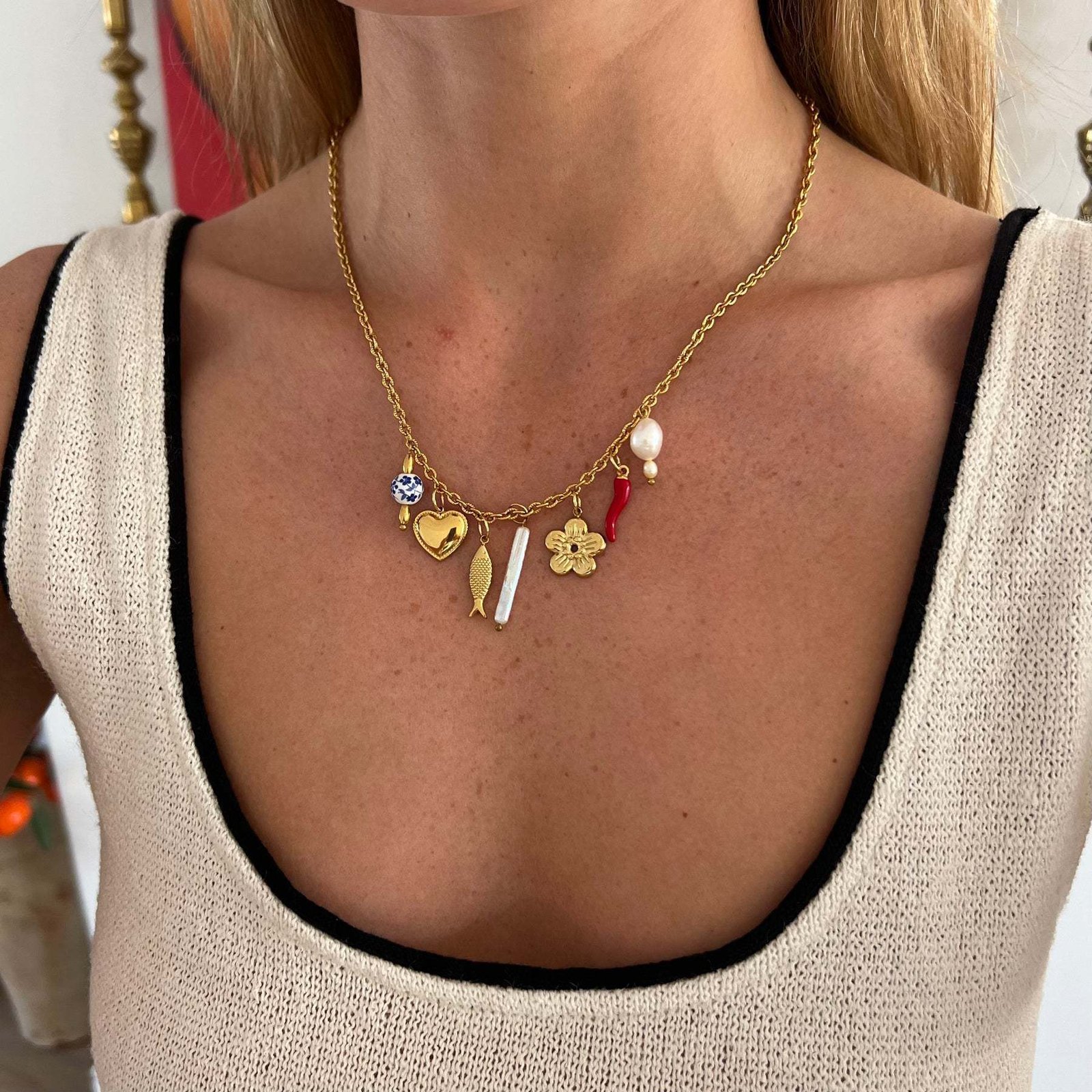 Heart Pearl Star Moon Horn Cherry Eye Pendant Necklace