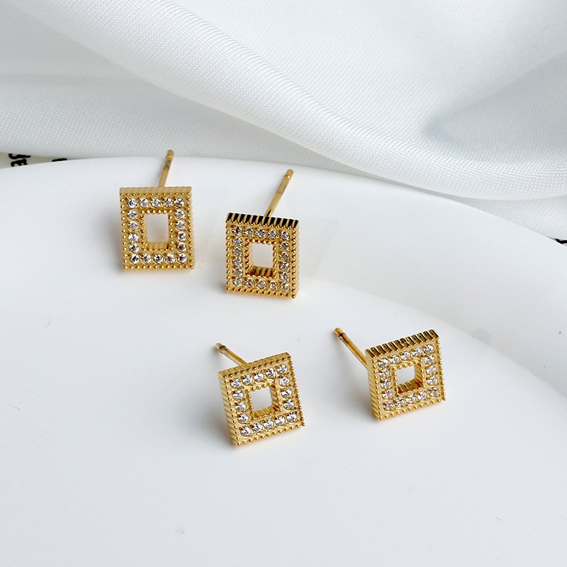 Heart Square Stud Earrings Zircon