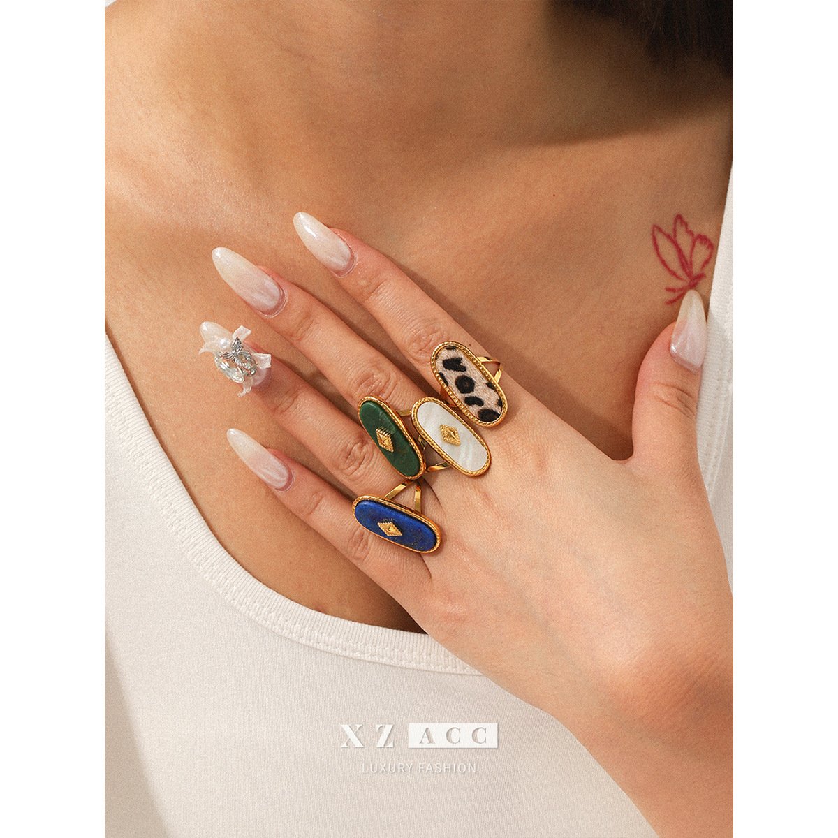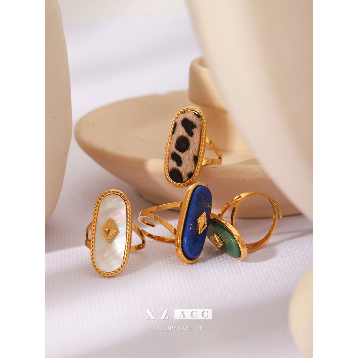 Lapis Lazuli White Shell Leopard Print Ring