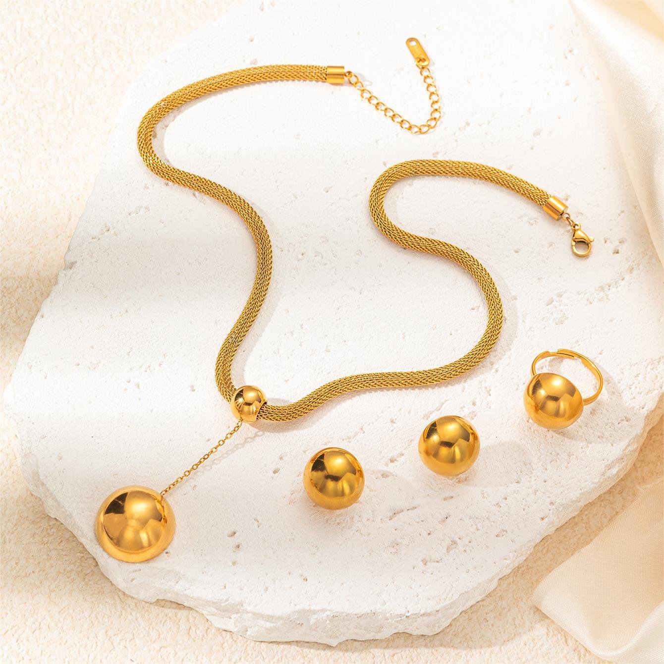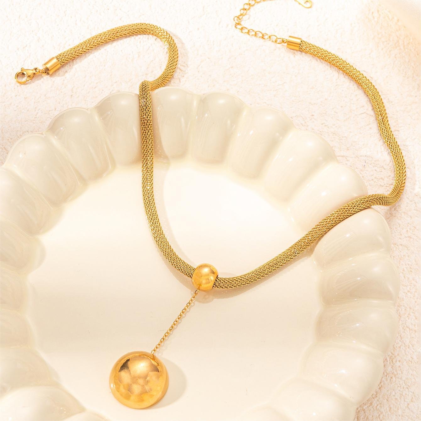 Large Bead Ring Pendant Mesh Chain Necklace
