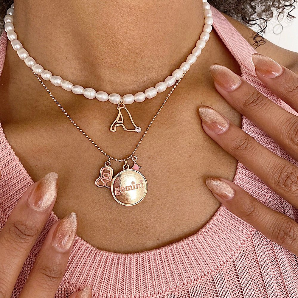 Letter Pendant Pearl Necklace