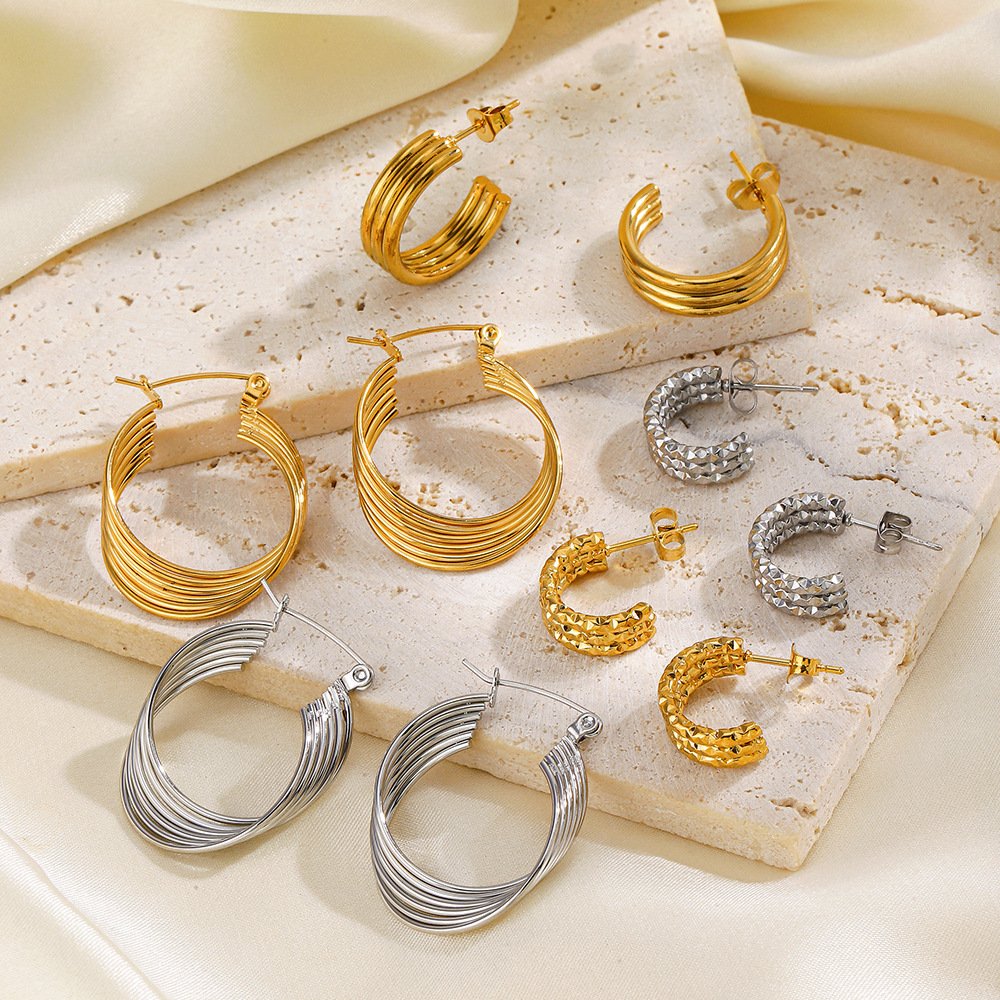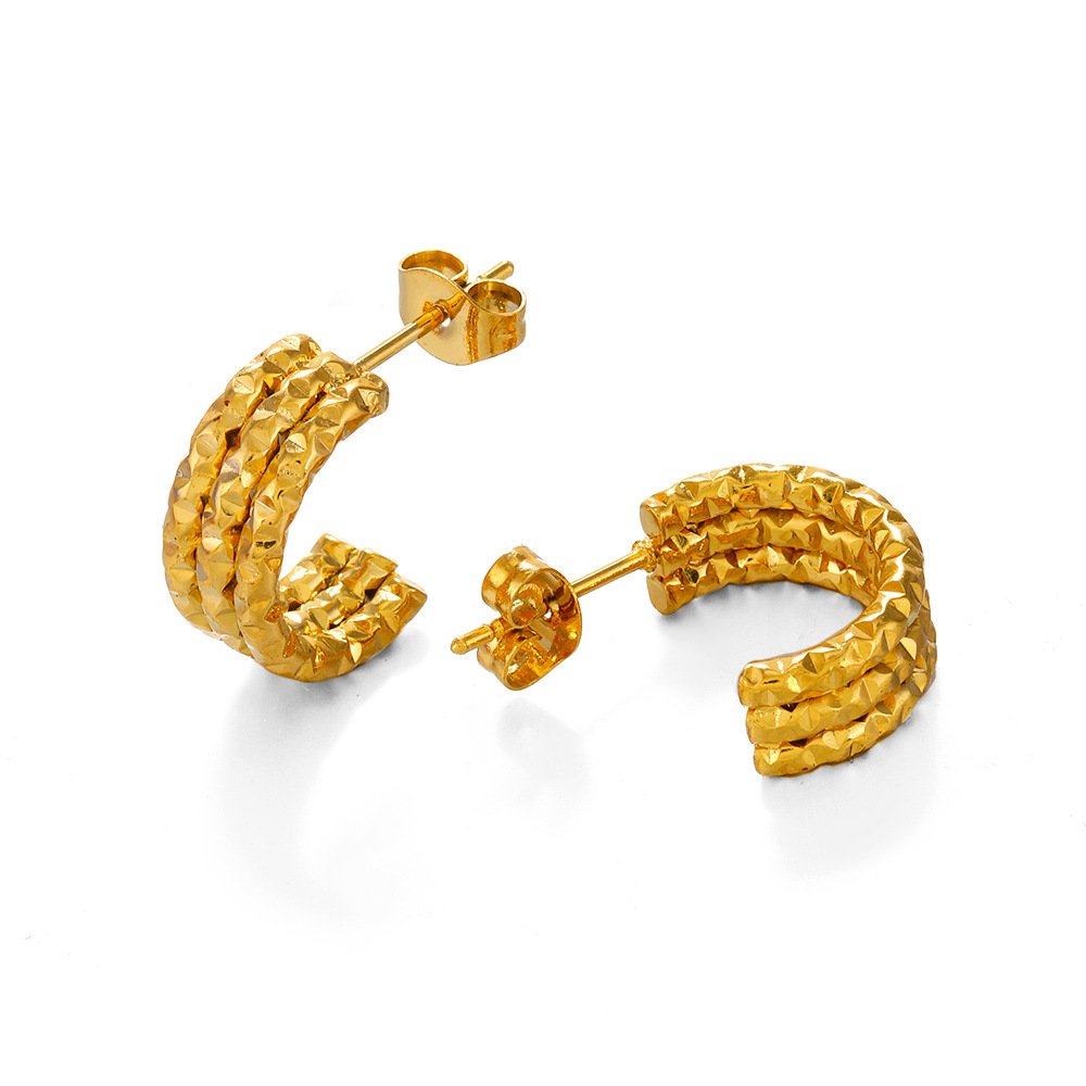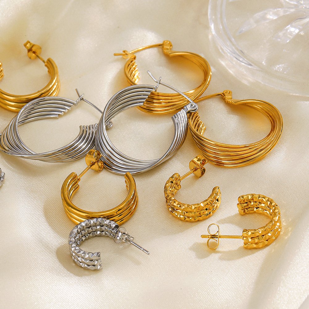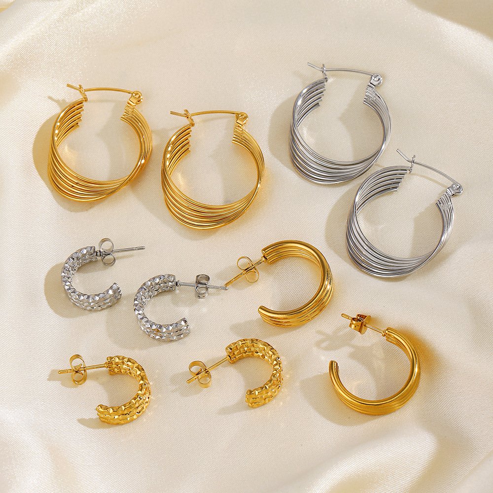 Line Stitching Earrings (C-Shaped)