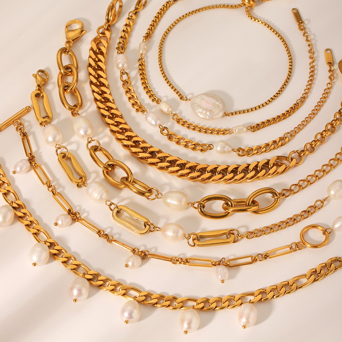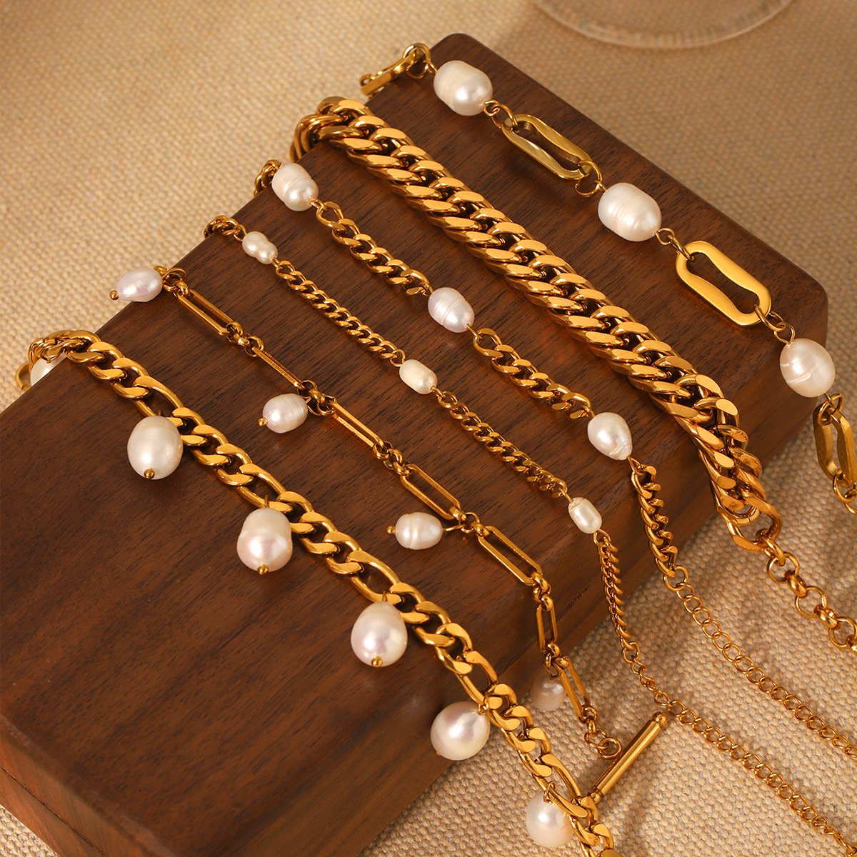 Natural Freshwater Pearl Figaro Chain Cuban Chain Bracelet