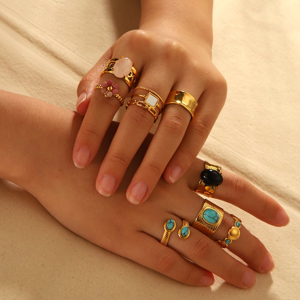 Natural Stone Flower Turquoise Ring