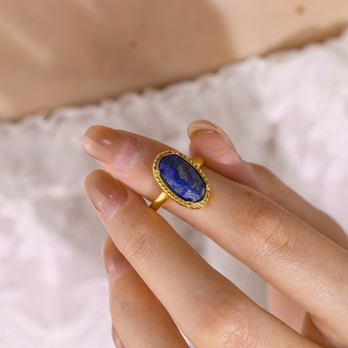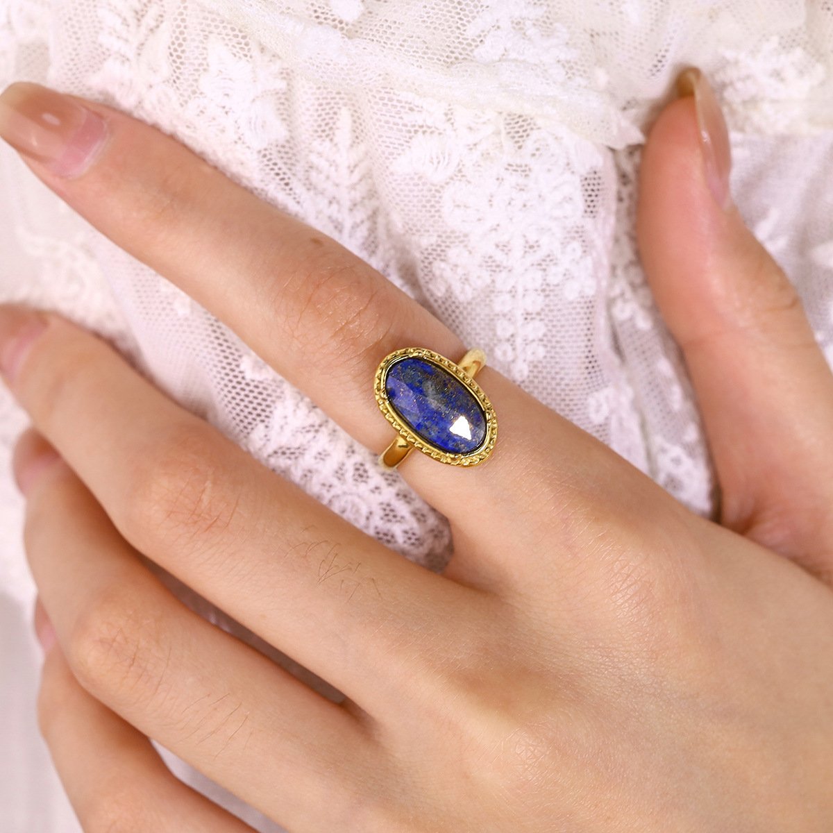 Natural Stone Oval Bluestone Ring