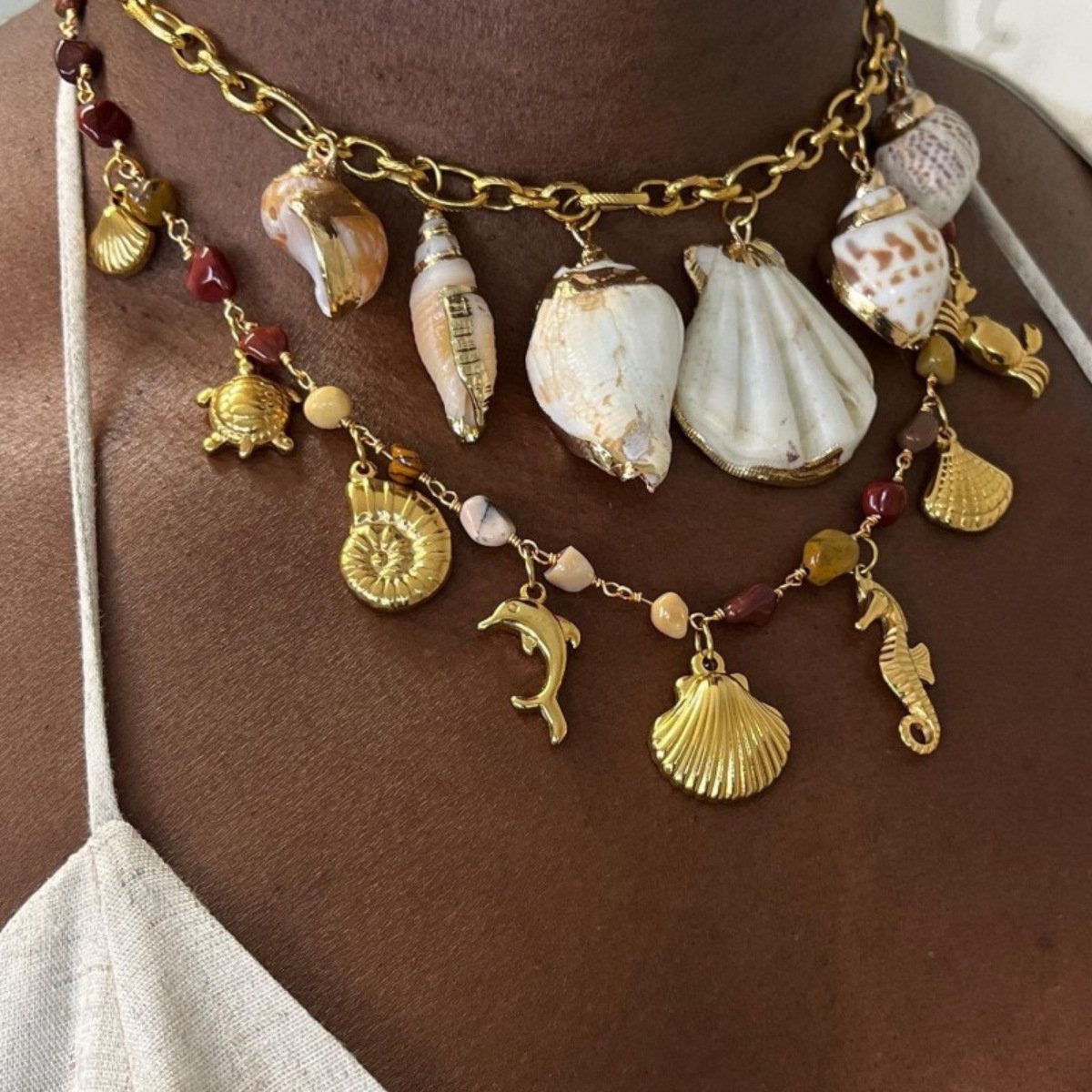 Ocean Crab Seahorse Shell Snail Pendant Necklace