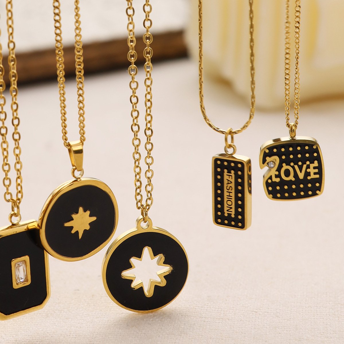 Oil-Drop Star Moon Necklace
