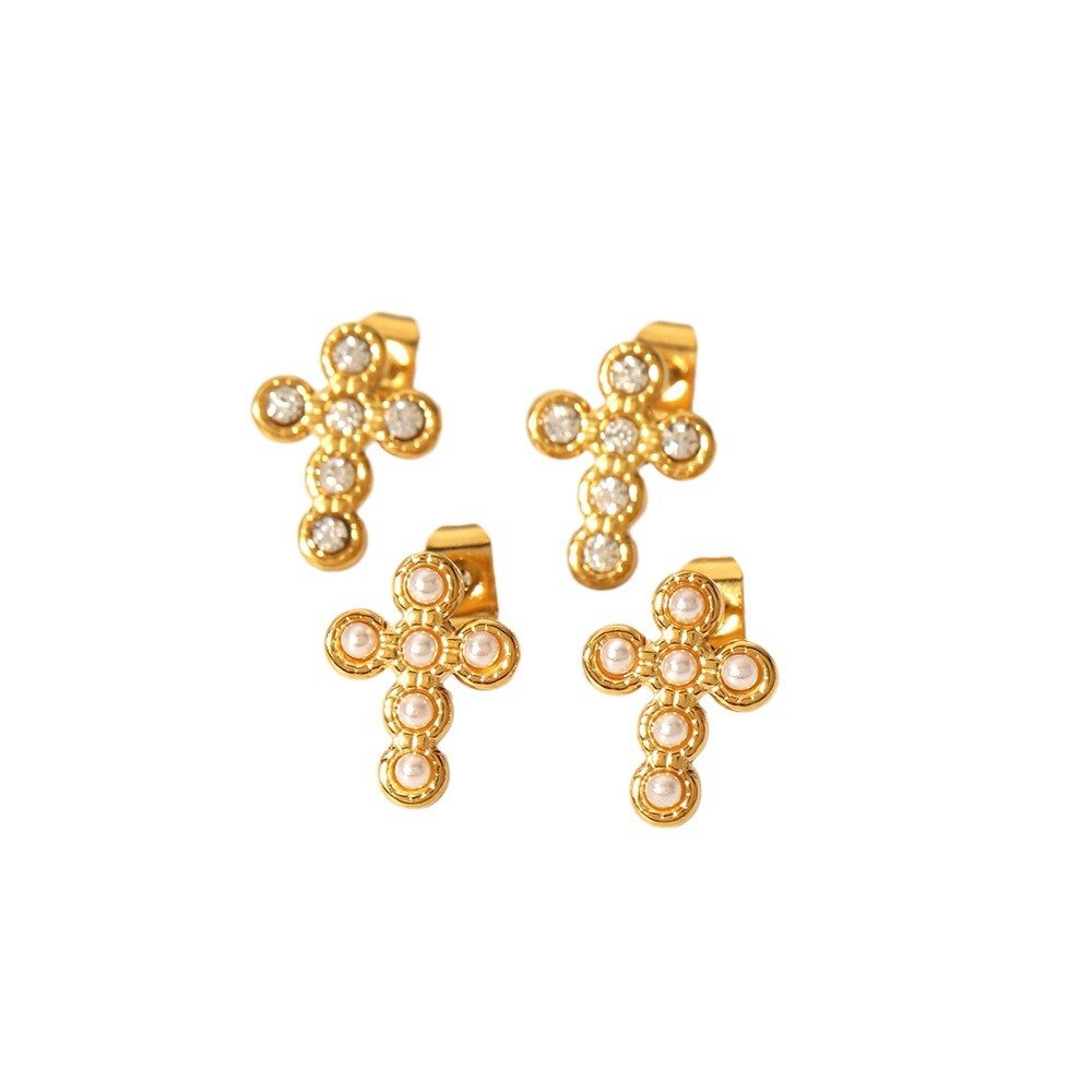 Pearl Cross Stud Earrings