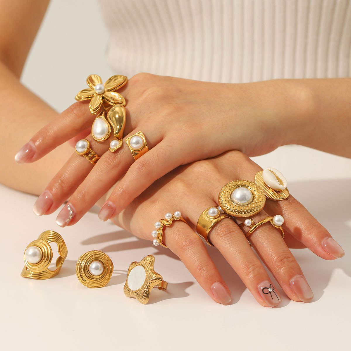 Pearl White Shell Flower Ring