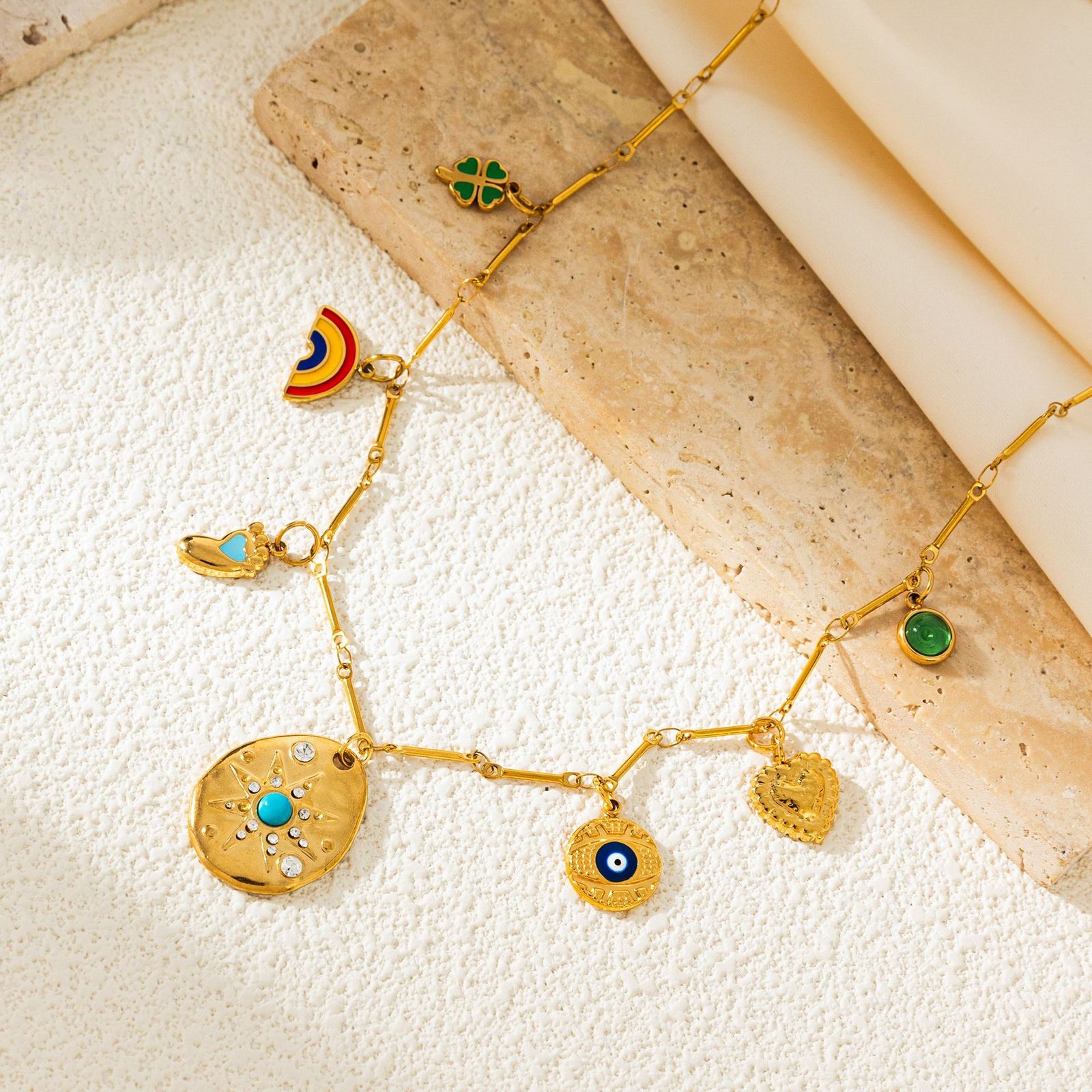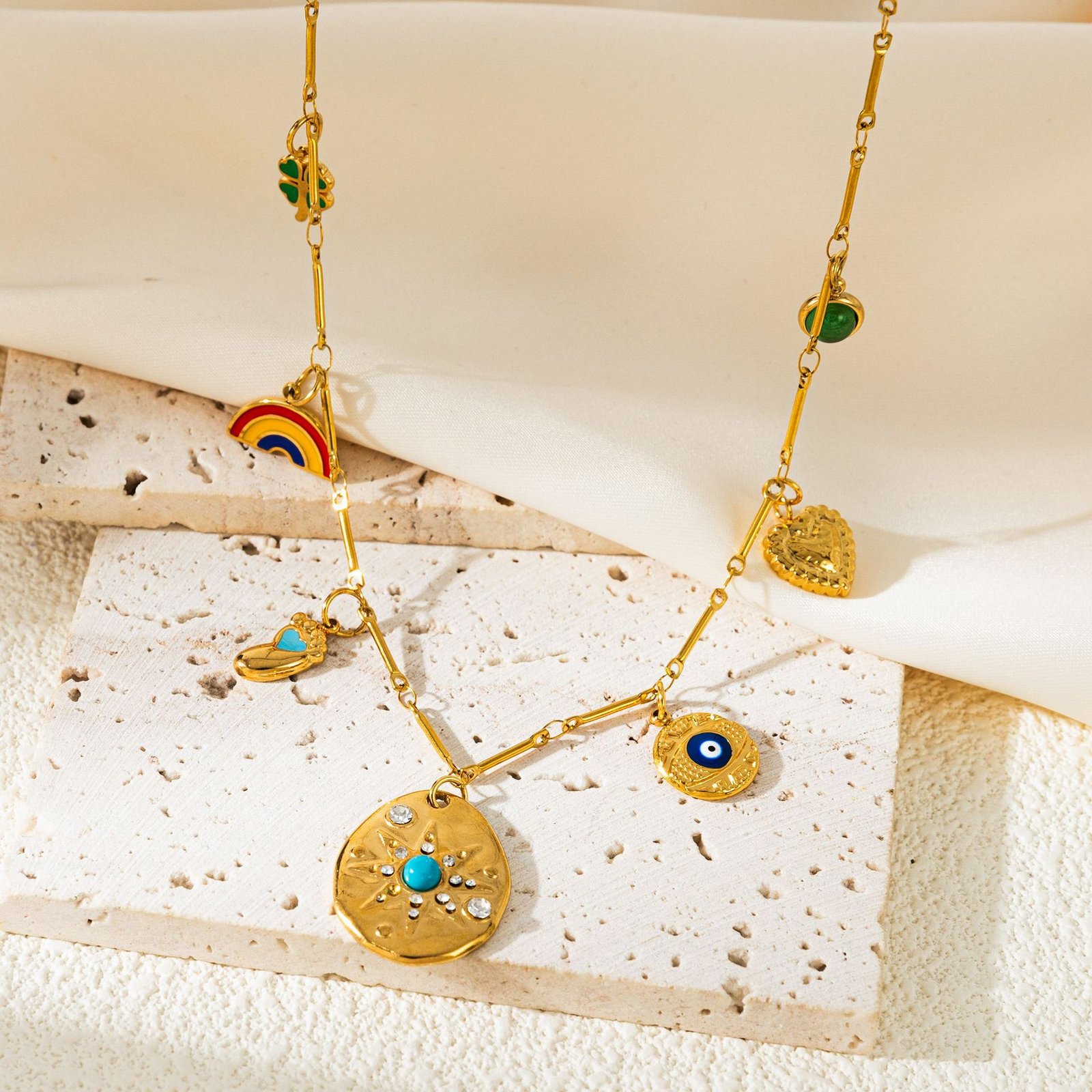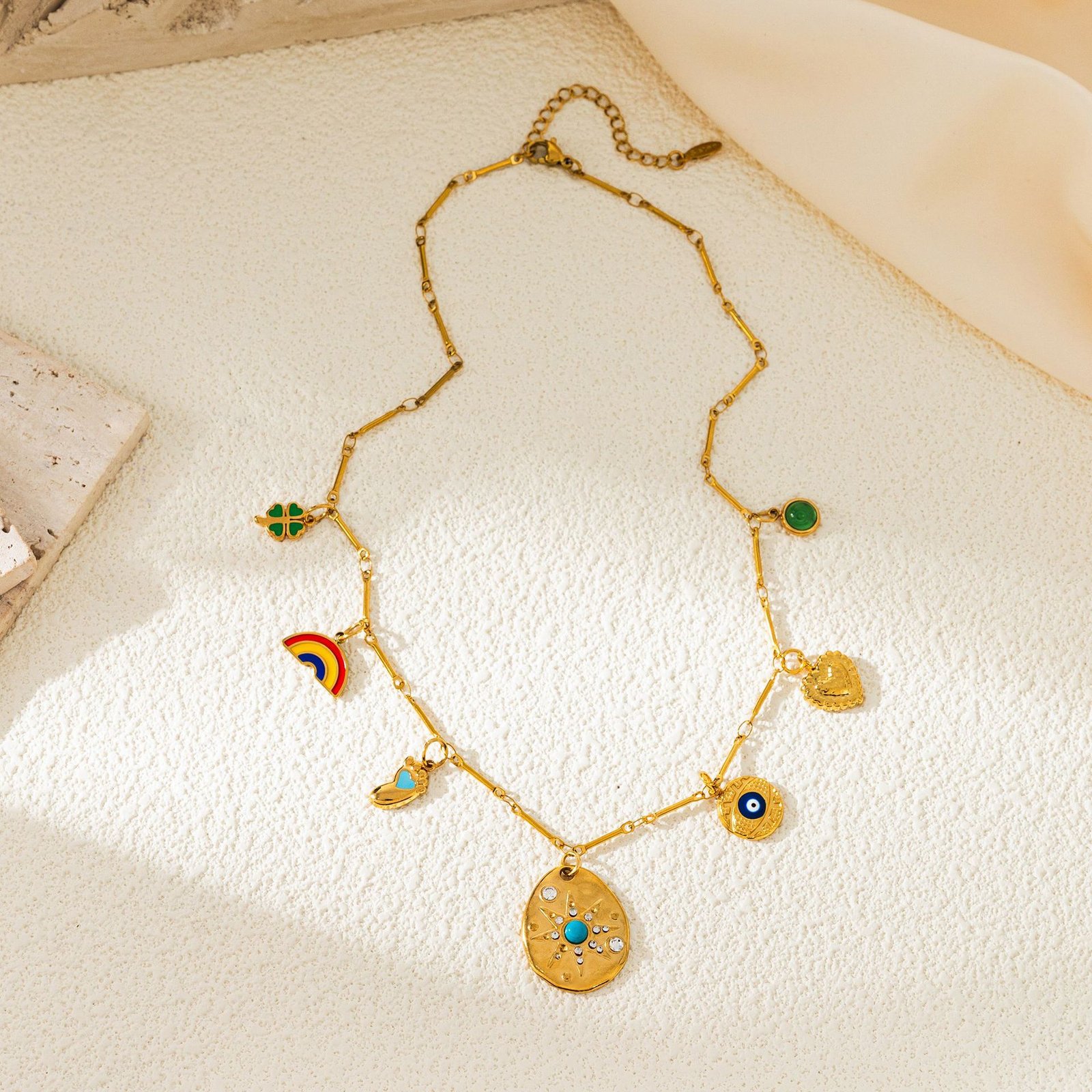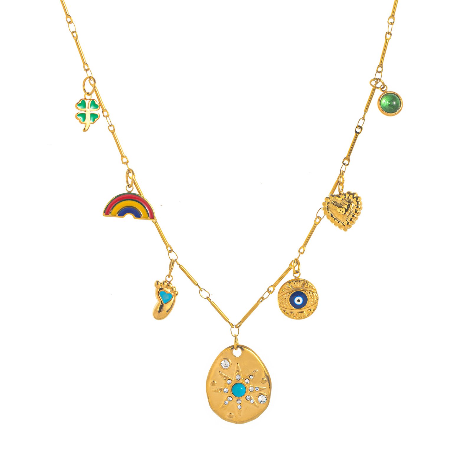 Rainbow Four-Leaf Clover Necklace