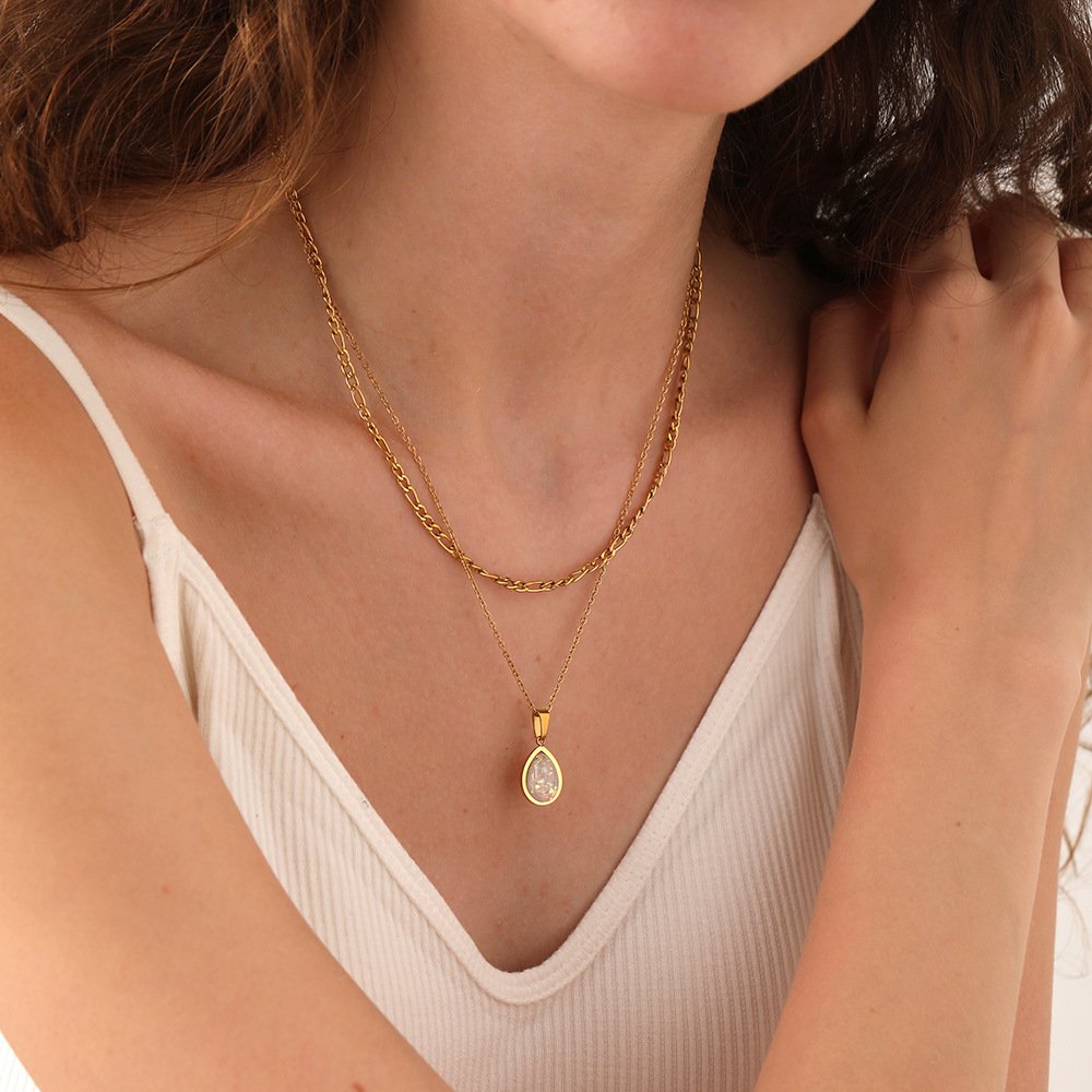 Resin Imitation Opal Teardrop Necklace
