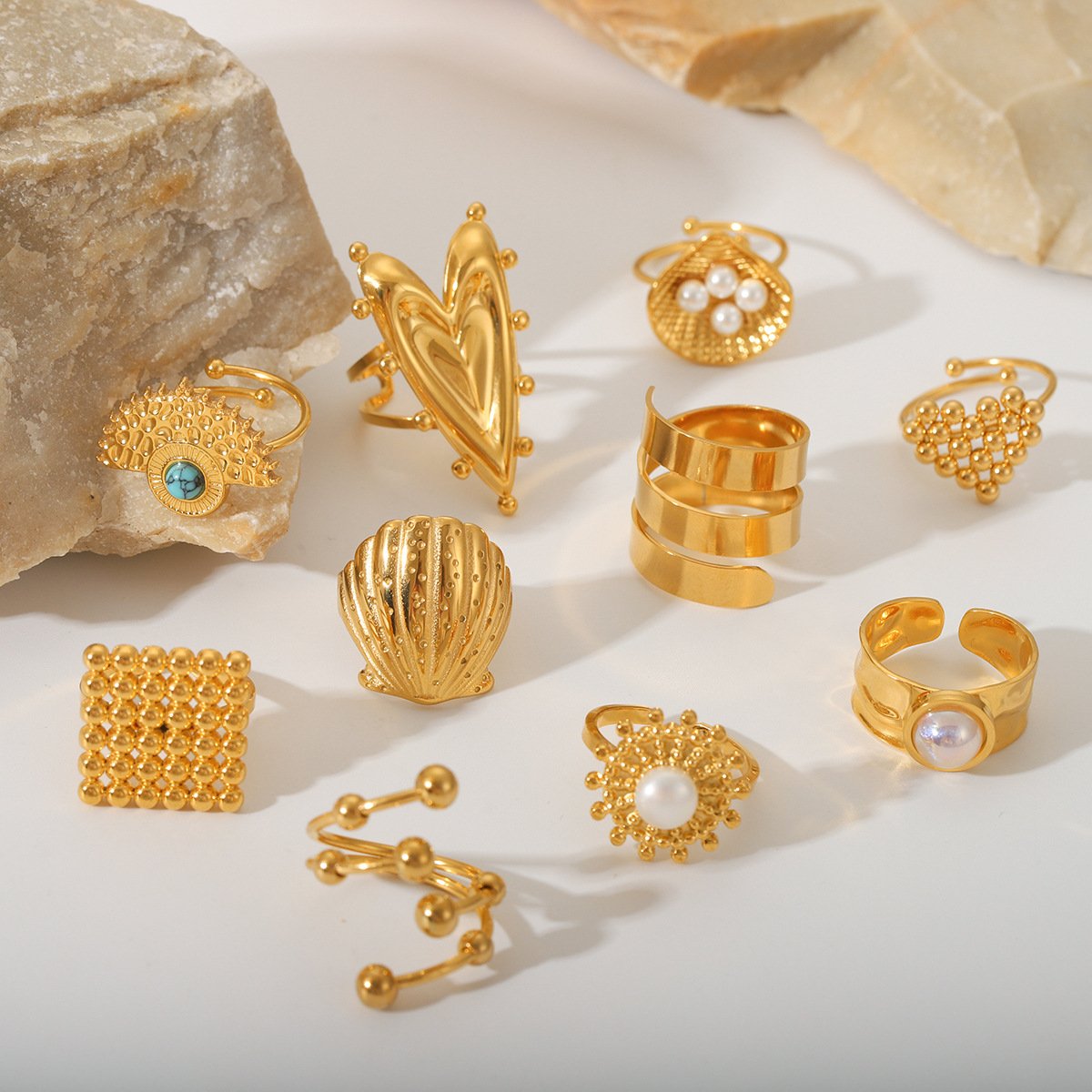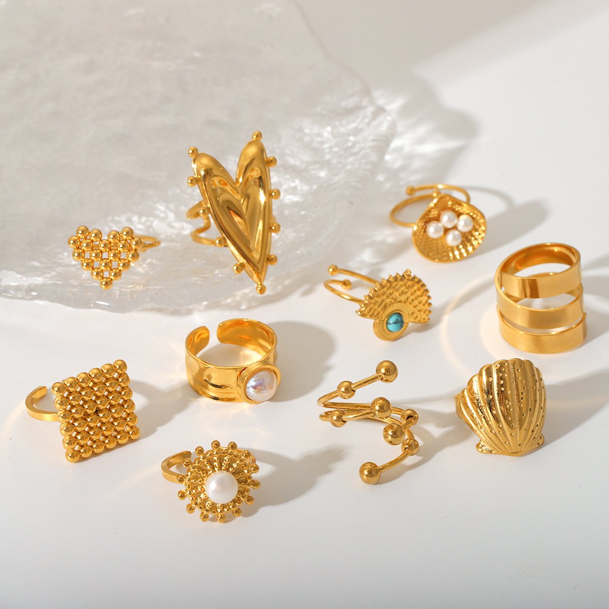 Shell Heart Pearl Ring