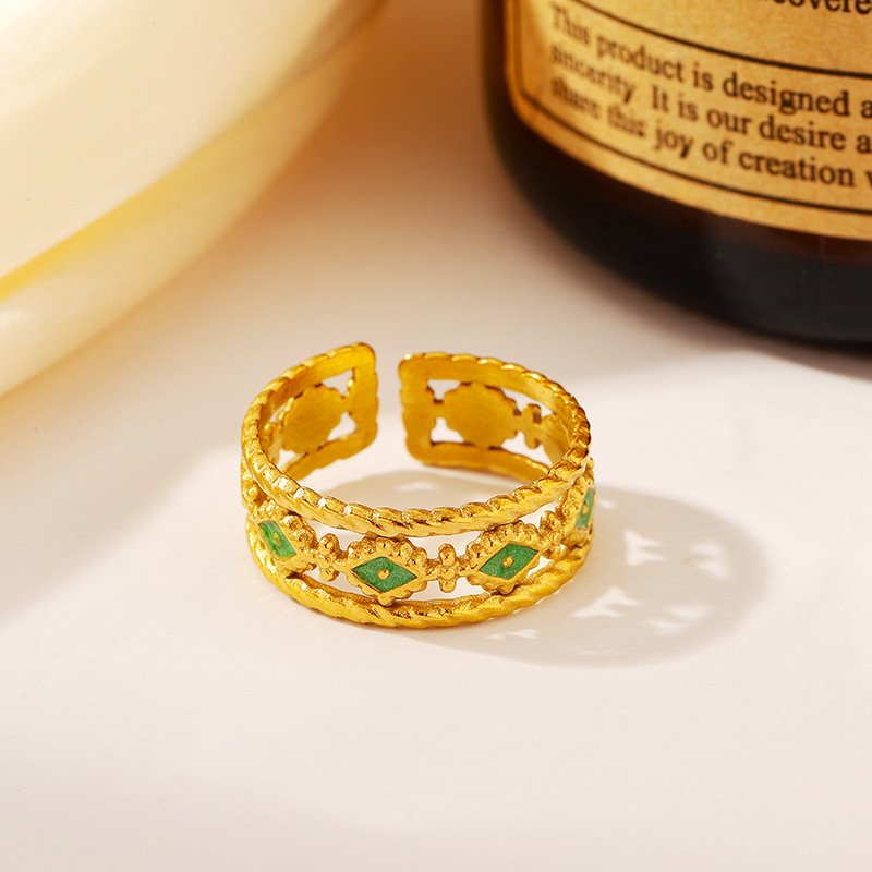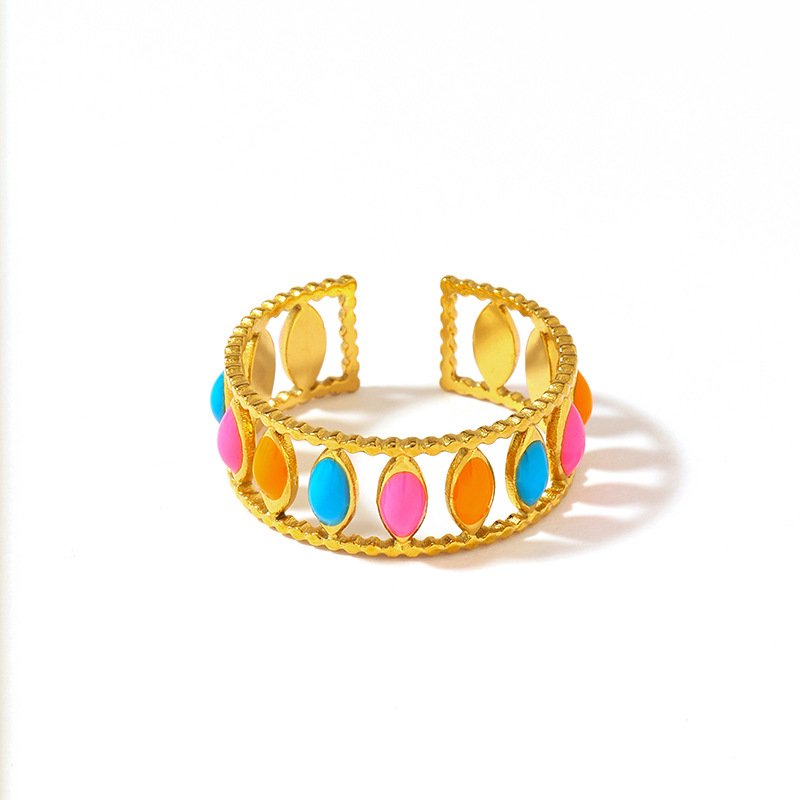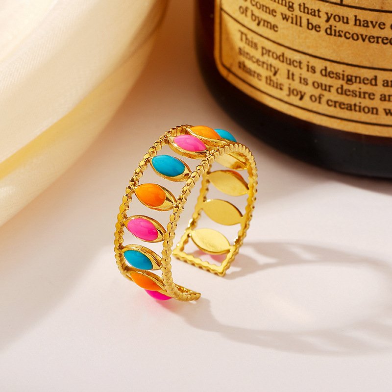 Stainless Steel Colored Leaf Ring